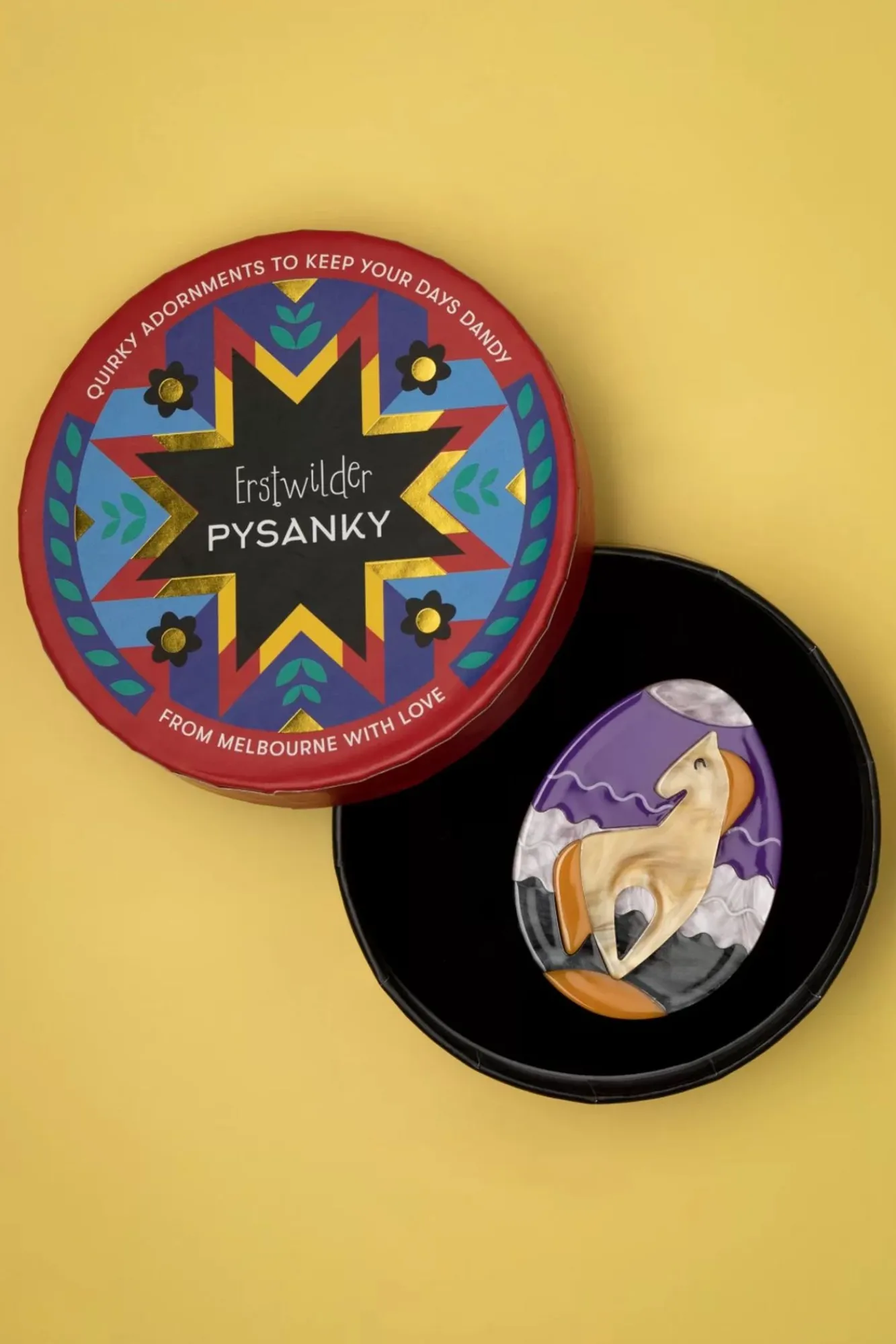 “Speed Through Your Toughest Challenges, Endure And Overcome. Prosperity Awaits For Those Who Hold This Egg In Their Hands And Hope In Their Heart.“ Voller Stolz Dürfen Wir Mitteilen, Dass Diese Horse Of Hope Brosche Der ‚Pysanky‘ Kollektion Online In Der Niederlande, Deutschland Und Belgien Exklusiv Bei Topvintage Erhältlich Ist! Pysanky Ist Ein Ukrainisches Osterei, Verziert Mit Bienenwachs Und Farbstoffen. Das Wort Stammt Von Dem Verb ‚Pysaty‘, Oder ‚Schreiben‘, Weil Die Designs Nicht Gefärbt, Sondern Mit Bienenwachs Geschrieben Wurden. Diese Brosche Wurde Handgefertigt, Handbemalt Und Aus Unterschiedlichen Harzschichten In Wunderschönen Farben Hergestellt, Die Mit Funkelndem Glitzer Verziert Wurde. Hoffnung In Deinem Herzen Und Diese Brosche An Deinem Outfit!