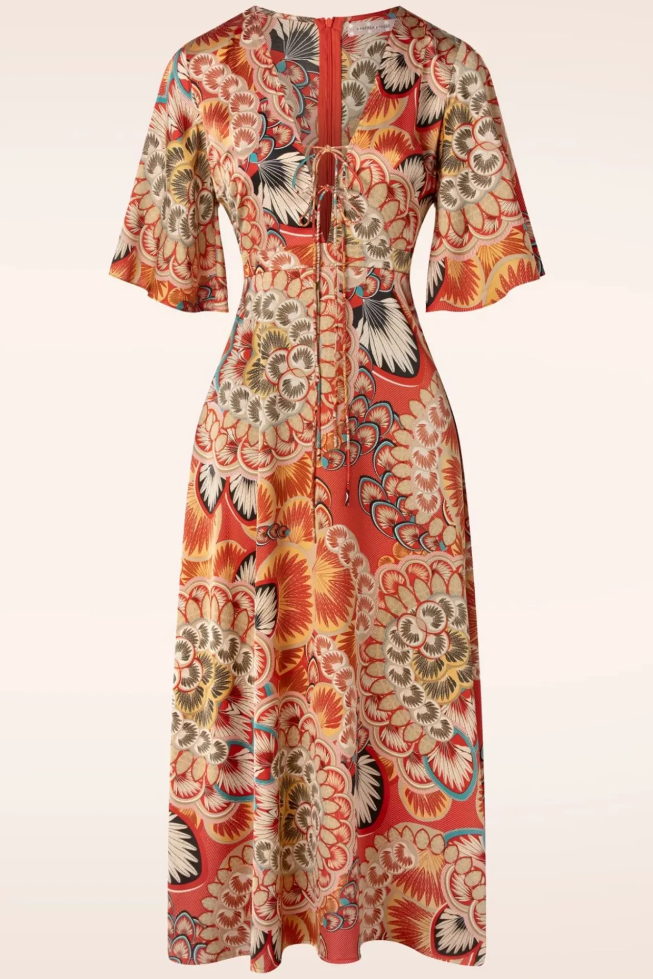 Zeige Den Glamourösen Hippie, Der In Dir Schlummert Mit Diesem 70Er Little Lies Kleid In Rot! Mit Diesem Feschen Kleid Erlebst Du Die Stylischen 70Er Noch Einmal! Das Wunderschöne. Farbenfrohe Boho Muster, Die Kurzen Schmetterlingsärmel, Der Tiefe V-Ausschnitt Mit Bindebändern Und Der Etwas Ausgestellte Maxi Rock Verleihen Dem Kleid Einen Ganz Besonderen Look. Hergestellt Aus Einem Luftigen, Angenehm Fallenden Roten Stoff (Stretcht Nicht!) Mit Einem Hauch Von Seide. Fühle Dich Wie Eine Lucky Boho Lady Und Heiße Die Neue Saison Voller Style Willkommen Mit Dieser Beauty !