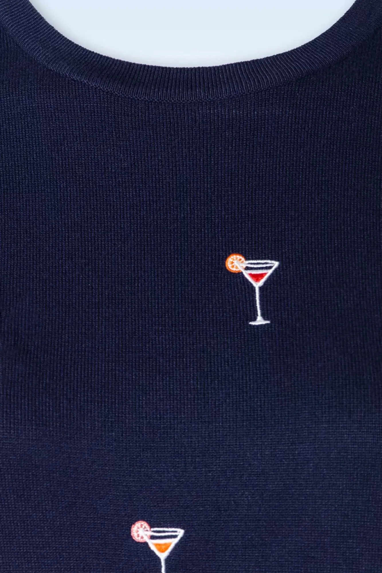 “Time For Cocktails!“ Dieses Schätzchen Wurde Aus Einem Angenehm Weichen Und Dehnbaren, Feingestrickten, Dunkelblauen Viskosemix Gefertigt, Der Sich Herrlich Trägt. – Für Einen Cocktail Ist Es Nie Zu Früh!
