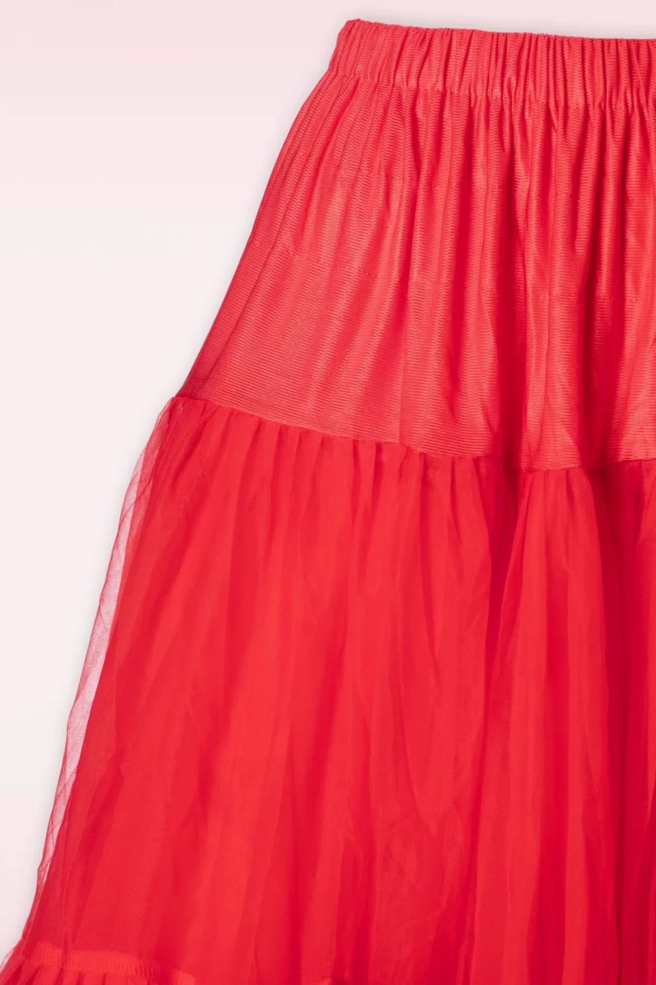 “Behind Every Great Twirl Is A Trusty Petticoat!“ Die Doppelte Stoffschicht Verleiht Extra Volumen Und Schwingt Graziös Mit Dir Mit Und Wurden Mit Verspielten Rüschen Am Saum Versehen. Die Oberste Schicht Wurde Aus Knallrotem Tüll Und Der Unterrock Aus Glänzendem Satin Gefertigt. Vollendet Mit Einem Elastischen Bund. Dieser Petticoat Verleiht Jedem Swing Kleid Das Gewisse Extra!