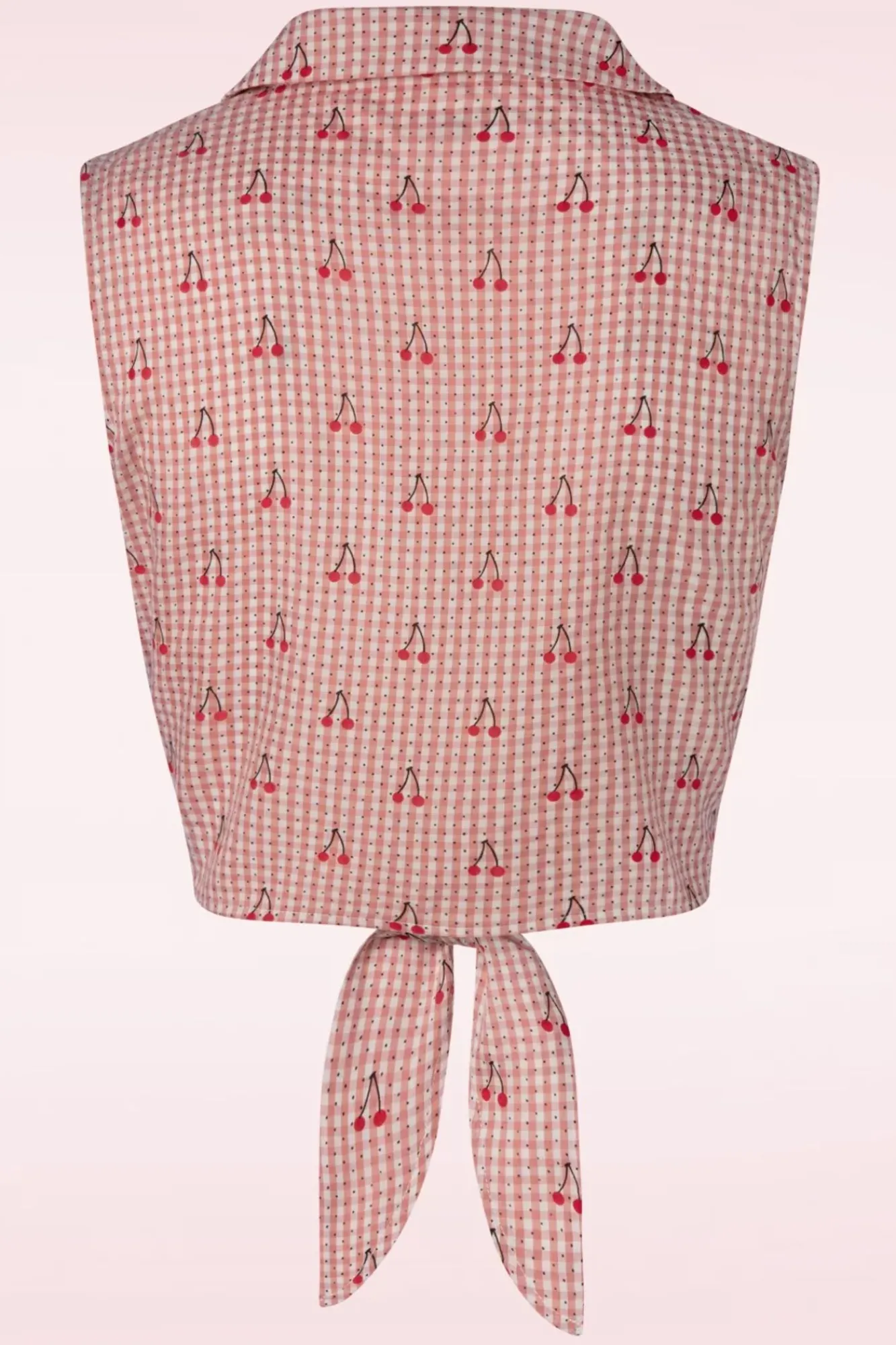 Diese Sweet Pea Bluse In Pink Verleiht Jedem Outlook Diesen Spielerischen Sommer-Look! Das Kürzere Modell Dieser Bluse Passt Ideal Zu Einer High Waist Hose Oder Rock; Und Dann Kann Man Gerade Noch Den Schmeichelhaftesten Teil Deines Bauches Sehen;-) Dieser Hingucker Wurde Mit Einem Spitzen Kragen Und Holzknöpfen Versehen Und An Der Unterseite Hat Man Die Möglichkeit Eine Schöne Schleife Zu Binden. Gefertigt Aus Einem Festen, Aber Luftigen Rosa Viskosemix Mit Einem Klassischen Karo Mit Schwarzen Punkten Und Kirschen. Zöger Nicht Und Hole Dir Diese Süße, Bevor Es Zu Spät Ist!