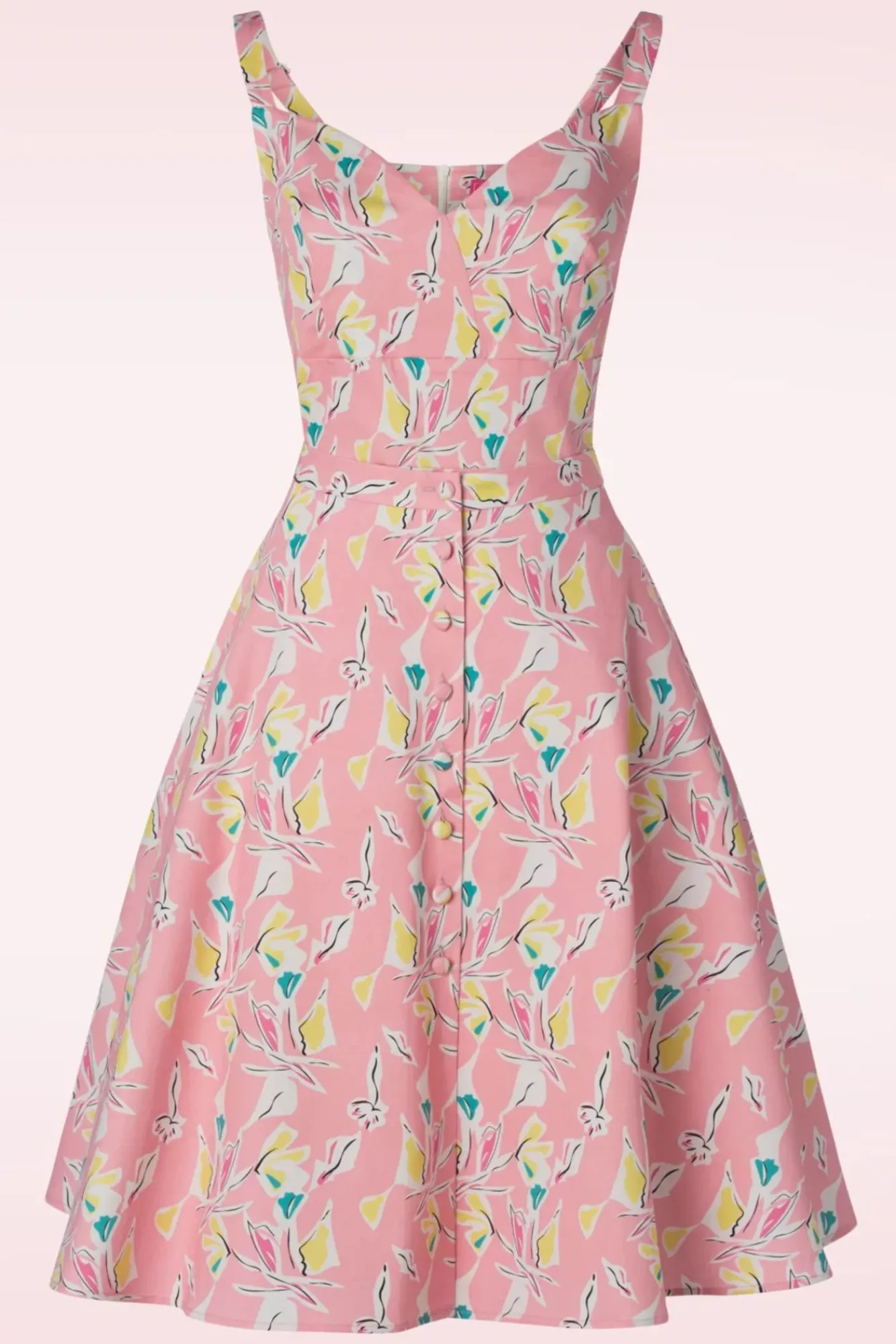“A Girl Can’T Help It… Just One Look At This Versatile Playsuit And She’S Sold! ;-)“ Der Entwurf Stammt Von Dem Ikonischen 2-Teiligen Beach Ensemble, Das Jayne Mansfield In Dem Film Schlagerpiraten (‚The Girl Can’T Help It‘) Aus Dem Jahr 1956 Trug. Gefertigt Aus Einem Luftigen, Glatten, Puderrosa Baumwoll-Satin Mix Mit Leichtem Stretch Und Einem Besonderen Muster – Die Farben Und Die Blumen Stimmen Mit Dem Muster Auf Dem Kleid Überein, Das Jayne In Dem Film ‚Kiss Them For Me‘ Aus Dem Jahr 1957 Trug!