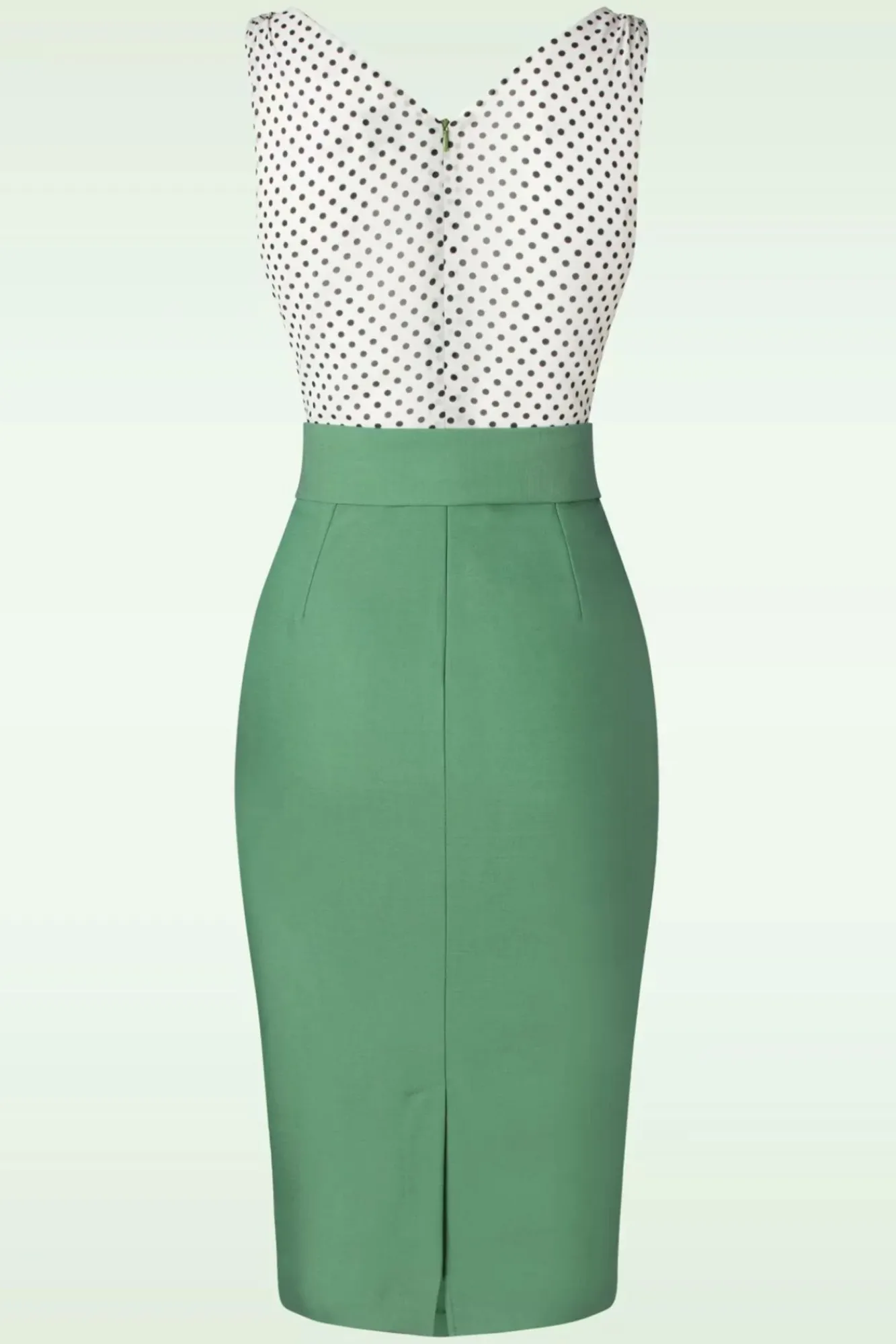 “This Dress Is Pure Dopamine And It’S Dopa-Mine!“ Das Weiße Top Von Diesem Körperbetonten Etuikleid Wurde Mit Schwarzen Polka Dots Übersät , Während Der Rock Aus Einem Festen, Aber Luftigen Salbeigrünen Stoff Mit Einem Hauch An Leinen (Kaum Dehnbar!) Gefertigt Wurde. “Not ‚Just‘ A Dress, But Instant Happiness!“ 😉