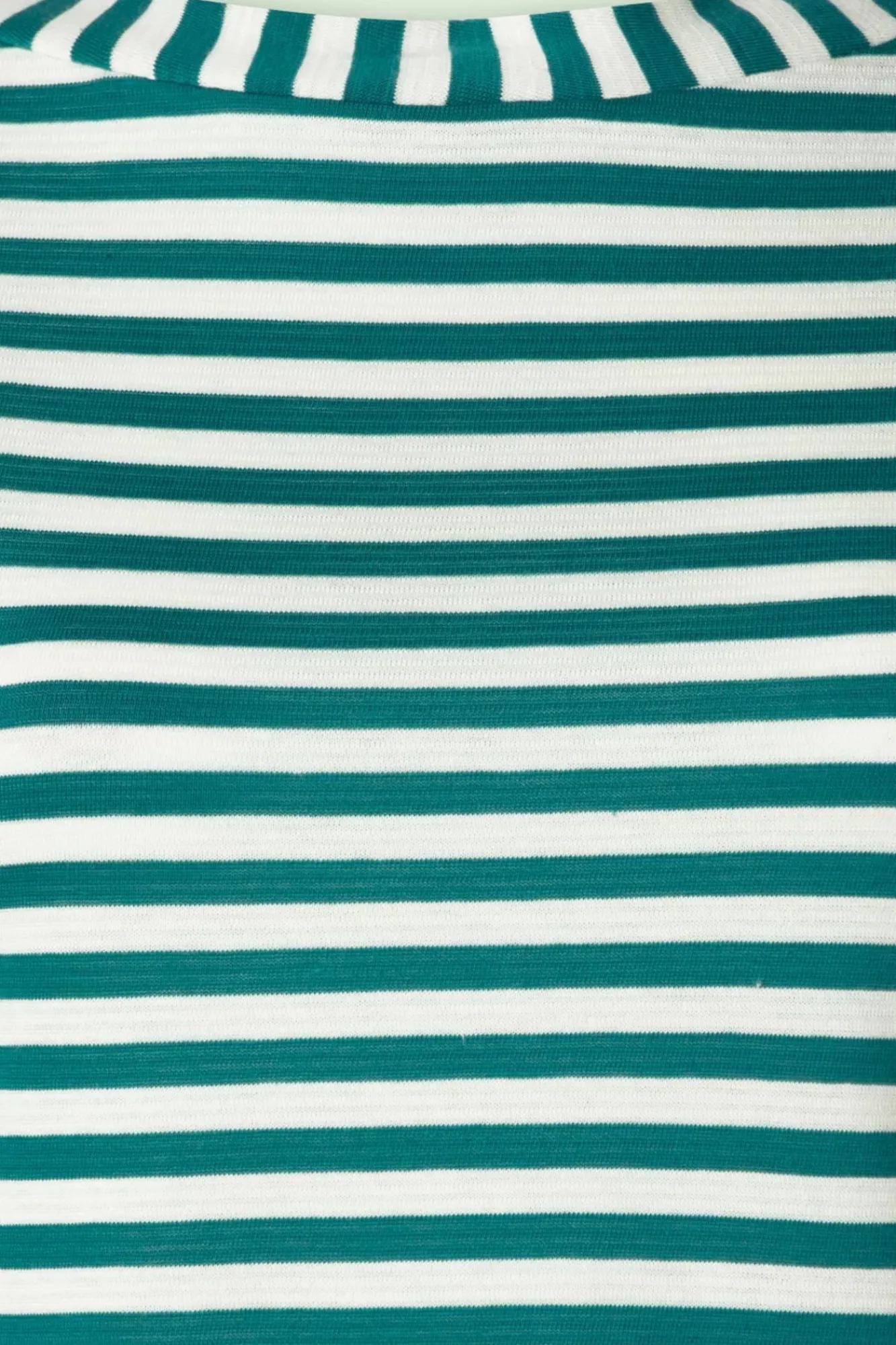 Dieses T-Shirt Ist Perfekt Für Die Sommerlichen Tage! Es Wurde Aus Einer Angenehmen Und Dehnbaren Bio-Baumwolle Gefertigt Und Mit Streifen In Off-White Und Türkis Versehen.