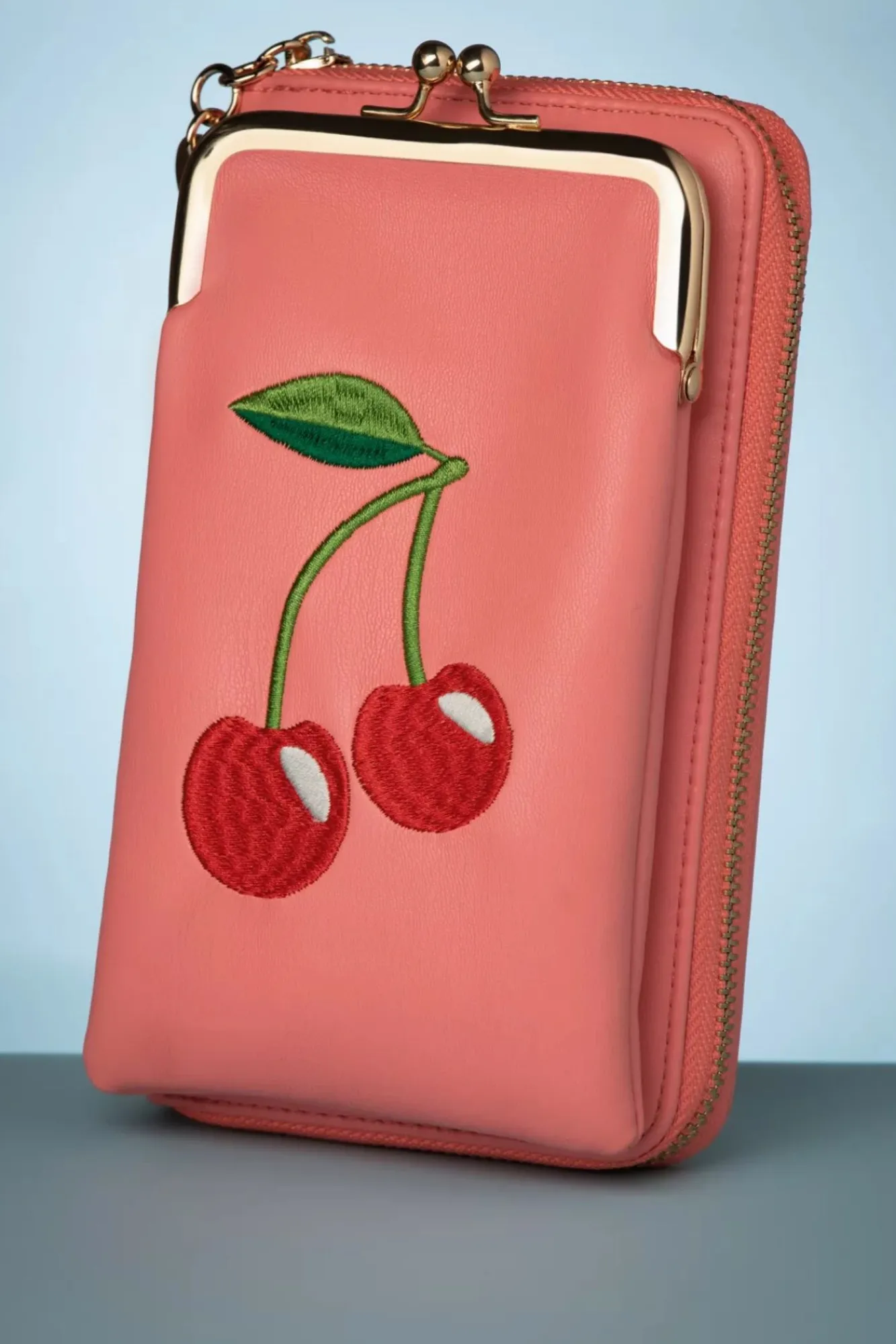 Was Brauchst Du Eigentlich Wirklich, Wenn Du Shoppen Gehst Oder Dich Mit Deinen Freundinnen Zum Lunch Triffst? Dein Handy, Deinen Liebsten Lippenstift Und Geld, Oder? Lasse Dein Große Handtasche Ruhig Zuhause, Denn Diese Praktische Handytasche Reicht Vollkommen. Gefertigt Aus Korallrotem Kunstleder Mit Einer Gestickten Kirsche An Der Vorderseite.