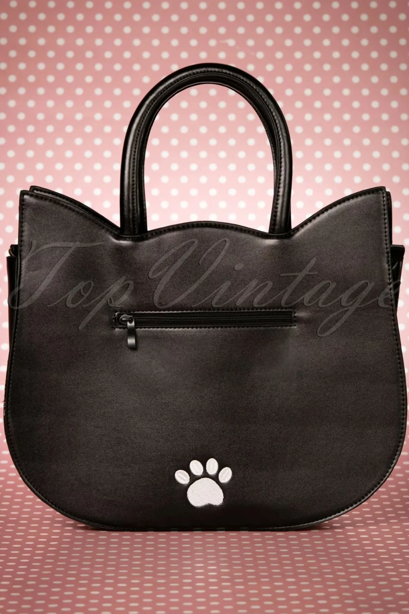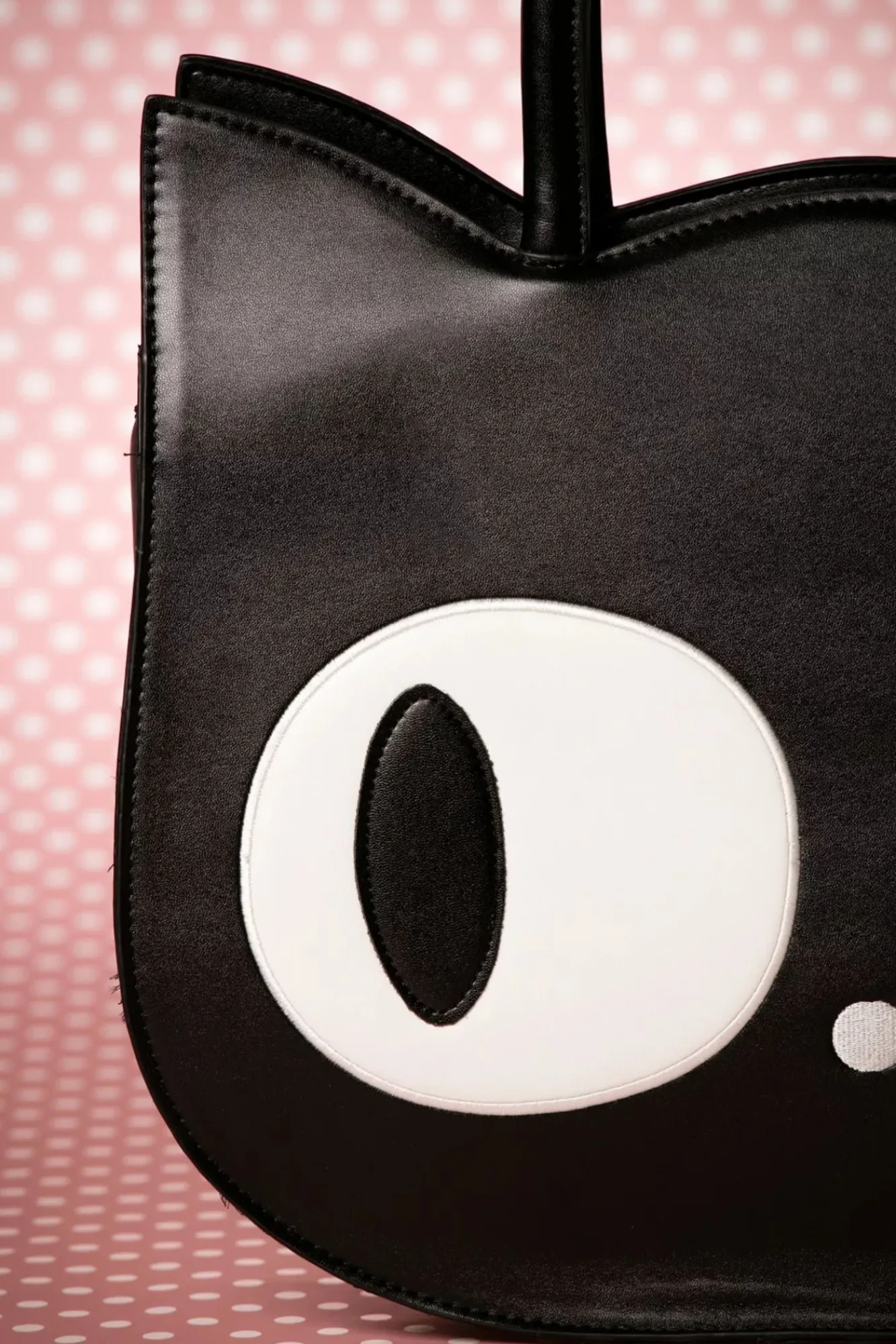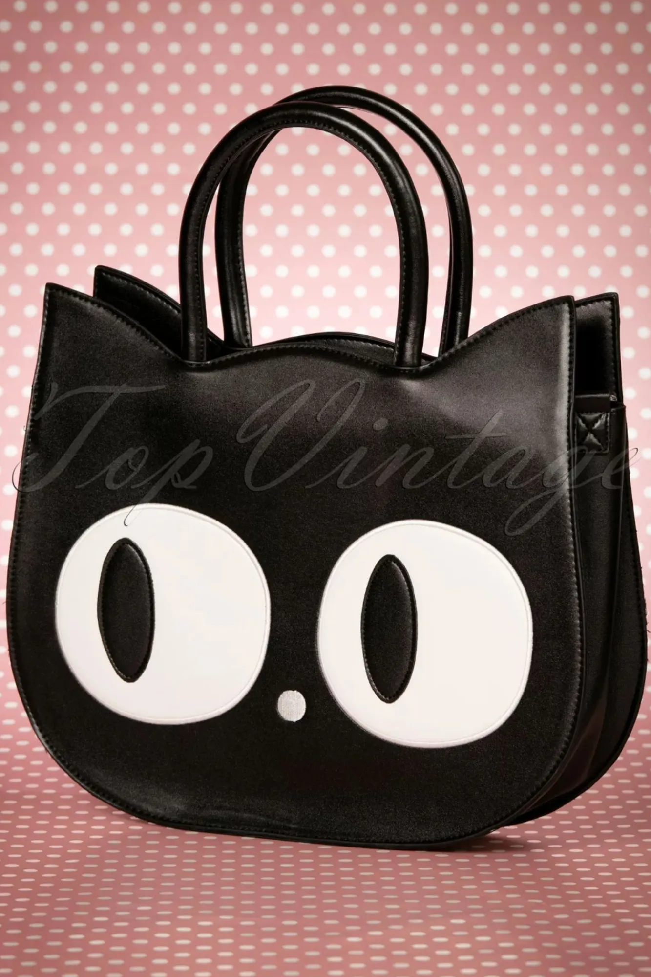 Diese 60S Lizzy The Big Eyed Cat Bag Ist Eine Verspielte Tasche Und Ein Echter Eyecatcher! Schaue In Meine Augen! Diese Wunderschöne Oversized Tasche Ist Hergestellt Aus Schwarzem Kunstleder In Form Eines Katzengesichts Mit Umwerfenden Großen Augen, Einer Kleinen Gestickten Nase Und Als Süßes Detail, Eine Gestickte Katzenpfote Auf Der Rückseite! Mit Dieser Tasche Wirst Du Bestimmt Alle Um Dich Herum Hypnotisieren! 🙂