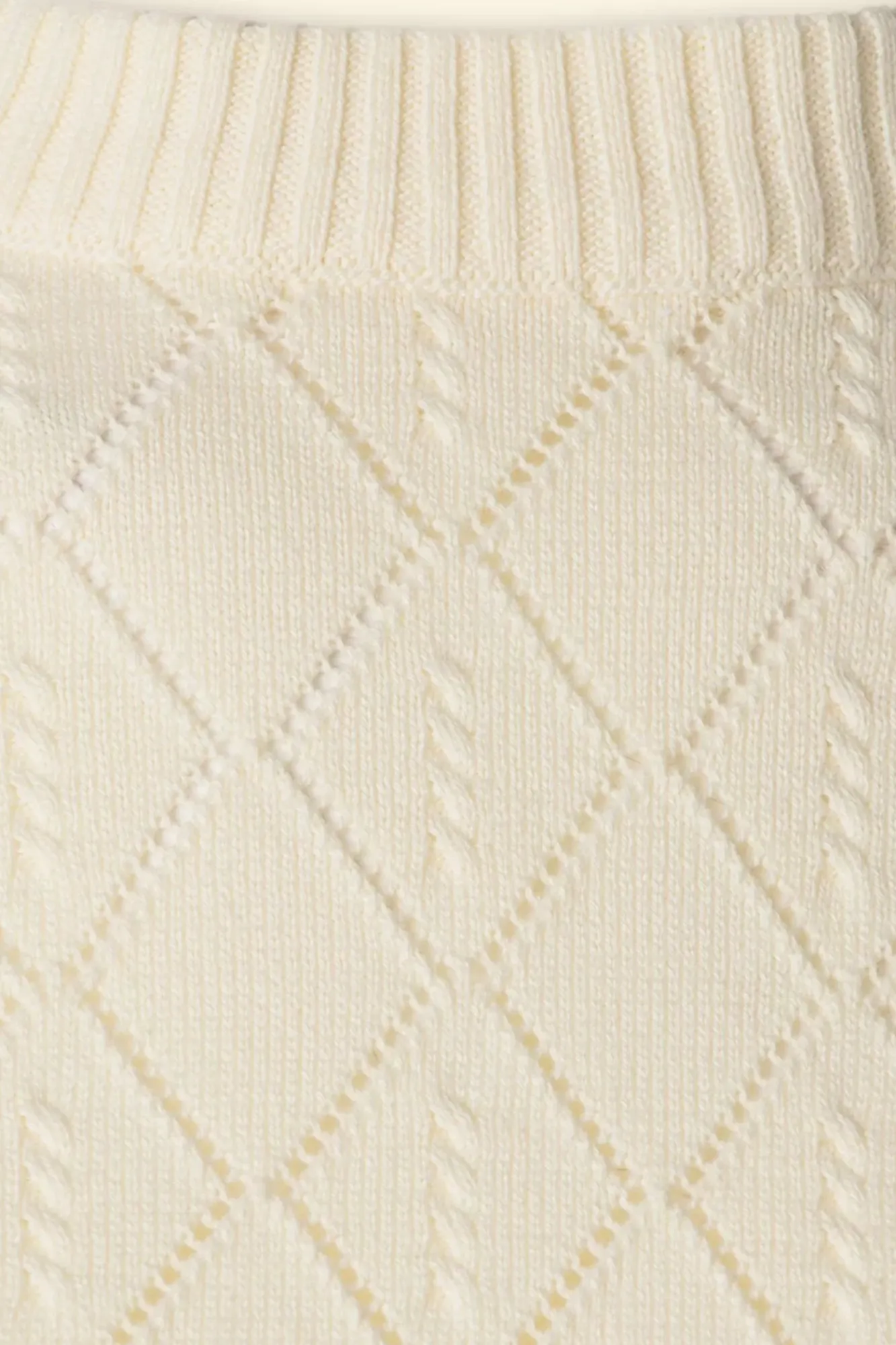„Na, Du Hübsche!?“ Dieses Herzallerliebste Top Wurde Aus Einer Feingestrickten, Angenehmen Und Dehnbaren Bio-Baumwolle In Off White Gefertigt Und Mit Einem Zopfmuster Und Einem Karo-Lochmuster Versehen.