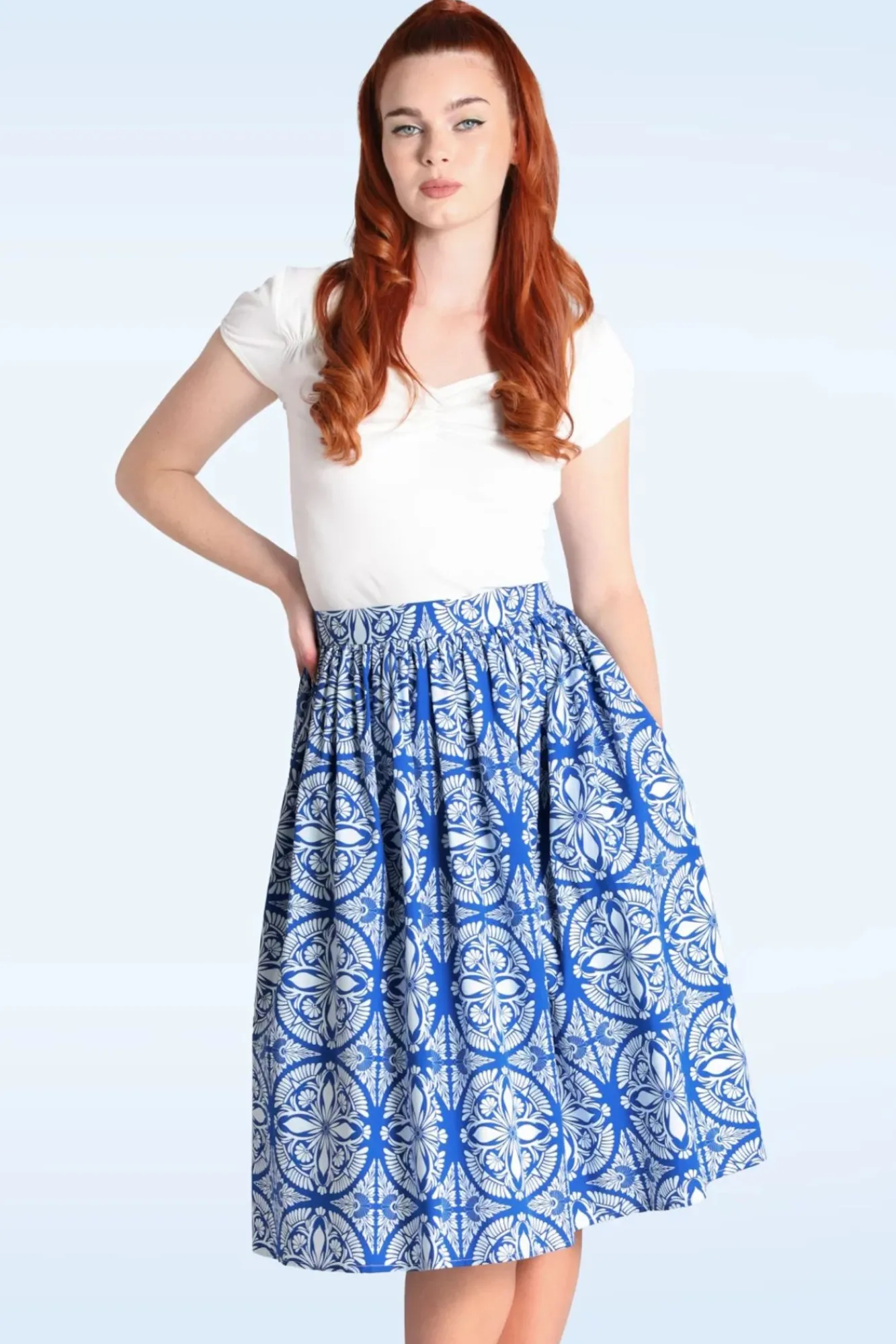 Träume Dich In Italienische Sphären… Trägst Du Diesen Sicily Swing Rock! Gefertigt Aus Einem Luftigen Und Angenehmen, Blauen Baumwollmix, Der Mit Weißen Blumen Gemustert Wurde – Trägt Sich Herrlich.