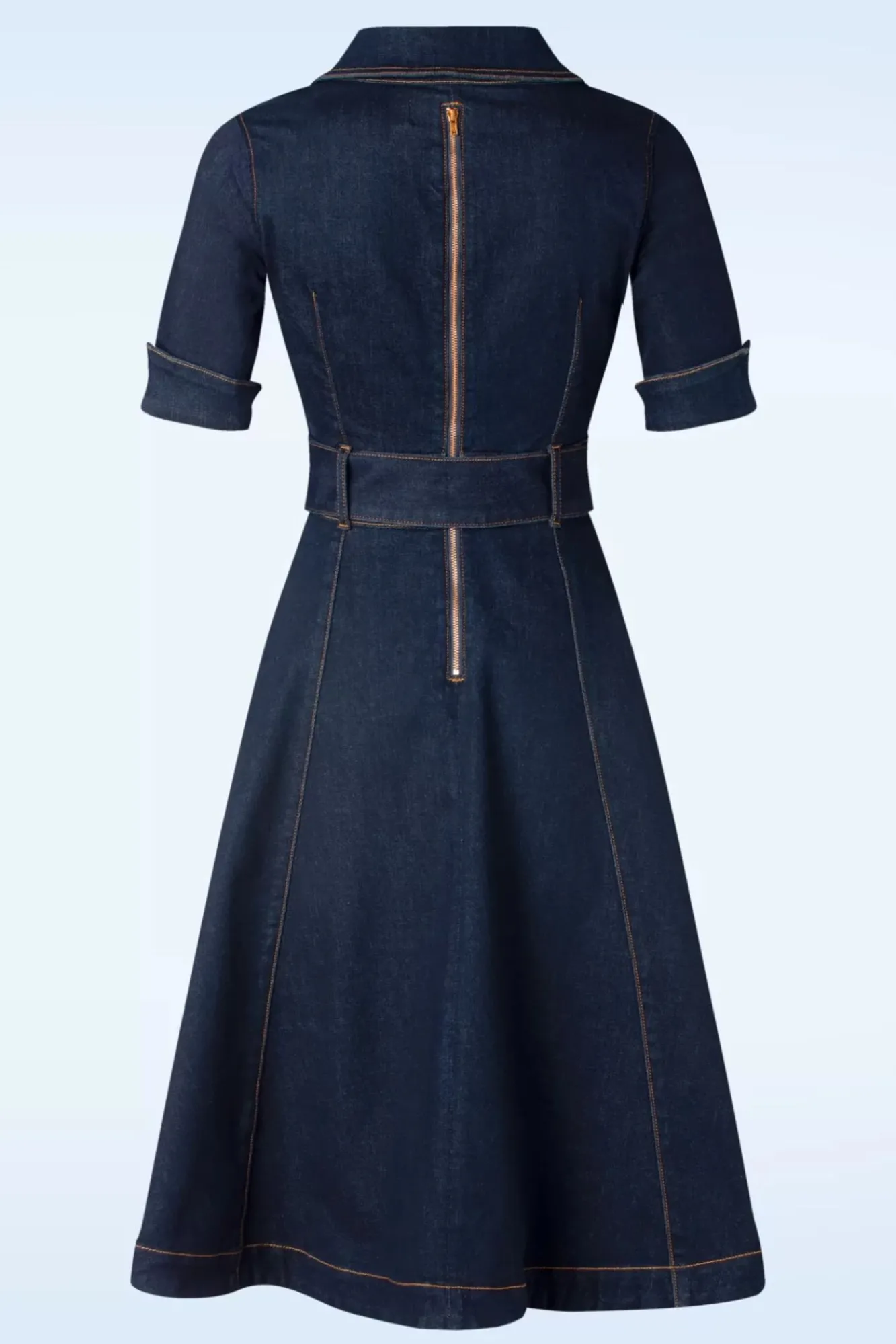 Das Leben Ist Zu Kurz Für Kompromisse Und ‚Bad Fitting Denim‘, So Folge Deinen Eigenen Blauen Träumen Und Bestelle Geschwind Lucielle, Deinen Denim Darling! – Dieses Kleid Wurde Aus Einem Festen, Aber Angenehm Fallenden, Blauen Baumwollmix In Dark Denim Gefertigt. Das Material Lässt Sich Leicht Dehnen Und Trägt Sich Daher Herrlich. Für Den Authentischen Touch Wurde Es Mit Gelben Nähten Vollendet.&Nbsp;