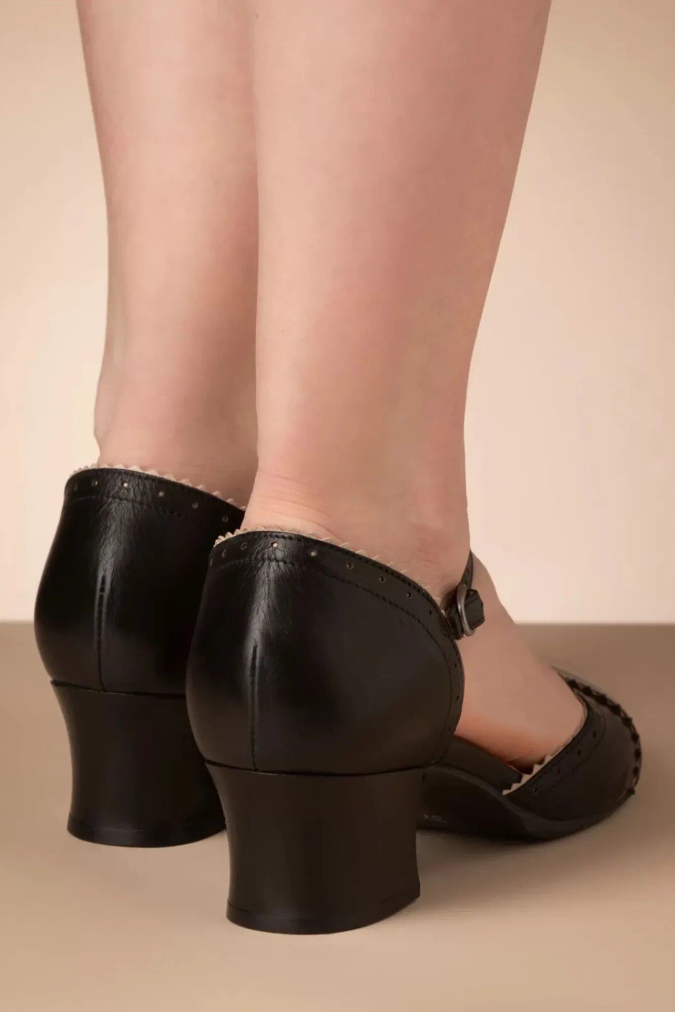 Betrete Die Neue Saison Mit Diesen Stylischen T-Strap Pumps! Gefertigt Aus Einem Qualitativ Hochwertigen Leder In Schwarz, Mit Cremefarbener Borte.