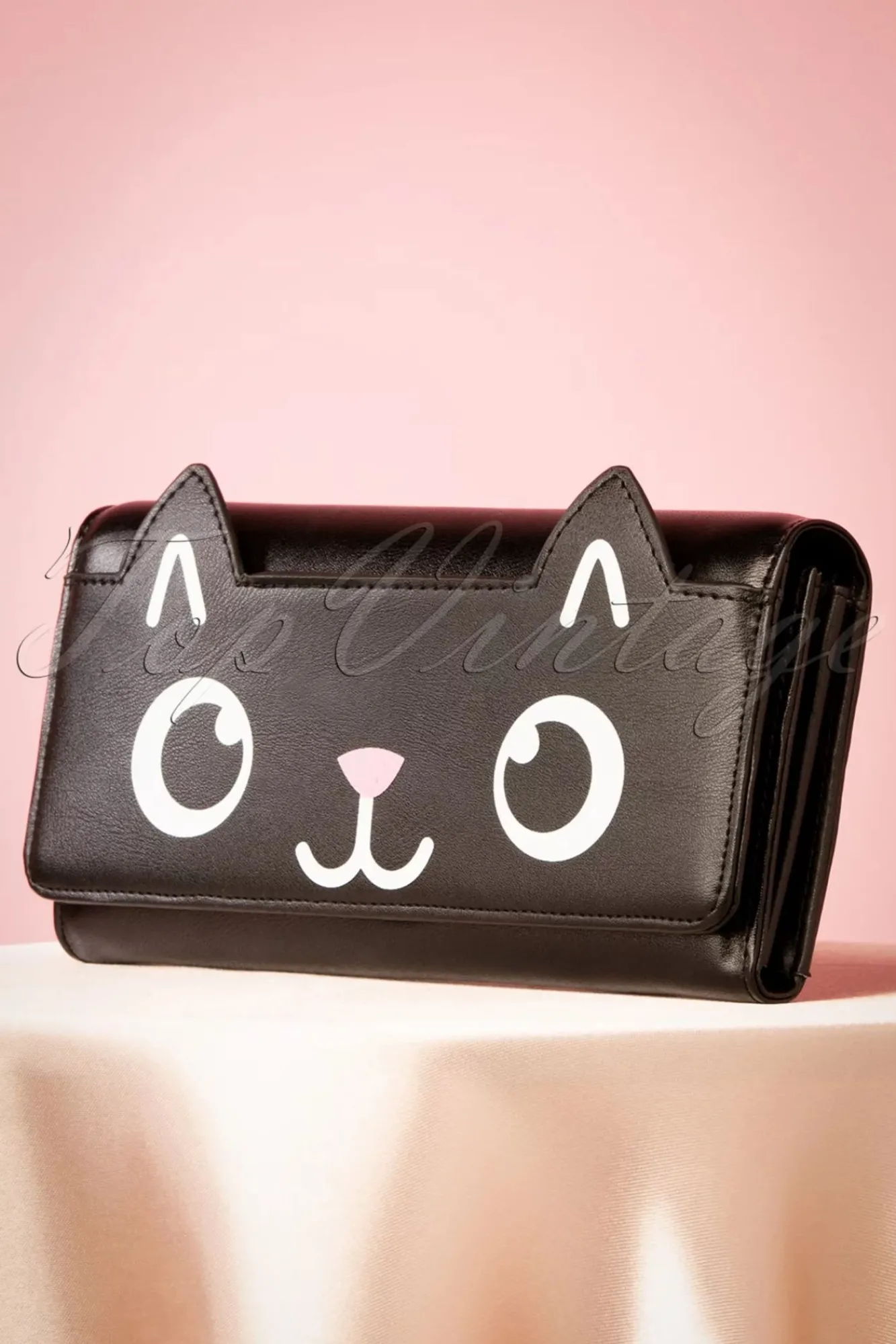 Die Katze Aus Dem Sack Lassen? Dieses Hübsche Und Praktische 50S Onyx Wallet In Black Solltest Du In Der Tasche Lassen ;-)! Die Applikation Eines Katzengesichts In Weiß Und Rosa Auf Der Vorderklappe Macht Aus Diesem Portemonnaie Ein Lustiges Und Verspieltes Accessoire. In Einem Praktischen Format Und Hergestellt Aus Schwarzem Leder-Imitat Von Einer Schönen Qualität. Mit Einem Extra Fach Mit Reißverschluss Für Münzen Und Platz Für 12 (Bank) Karten Und Passfotos. Zwei Fächer Für Banknoten Und Kassenzetteln. Ergänzt Mit Einem Druckknopf-Verschluss Damit Dein Geld Sicher Aufbewahrt Wird. “Miau,Miau.. I Want It… Now!“