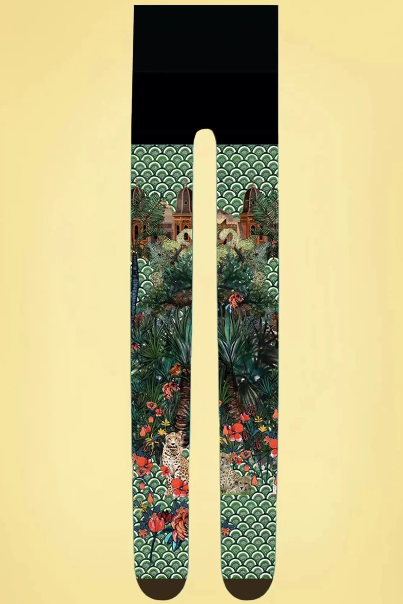 Mit Liebe Und Leidenschaft In Einer Werkstatt In Der Nähe Von Lyon Entworfen Und Bedruckt, Ist Diese Strumpfhose Eines Echtes Kunstwerke Für Deine Beine! Diese 50Er Graouu Strumpfhose Aus Der ‚Que La Fête Commence‘ Kollektion Unserer Neuen Marke Marie Antoilette Hat Ein Lebendiges, Vom Dschungel Inspirierten Muster Mit Leoparden, Umhüllt Deine Beine Auf Bequeme Weise Und Dehnt Sich Gut. “Roarrrr!‘