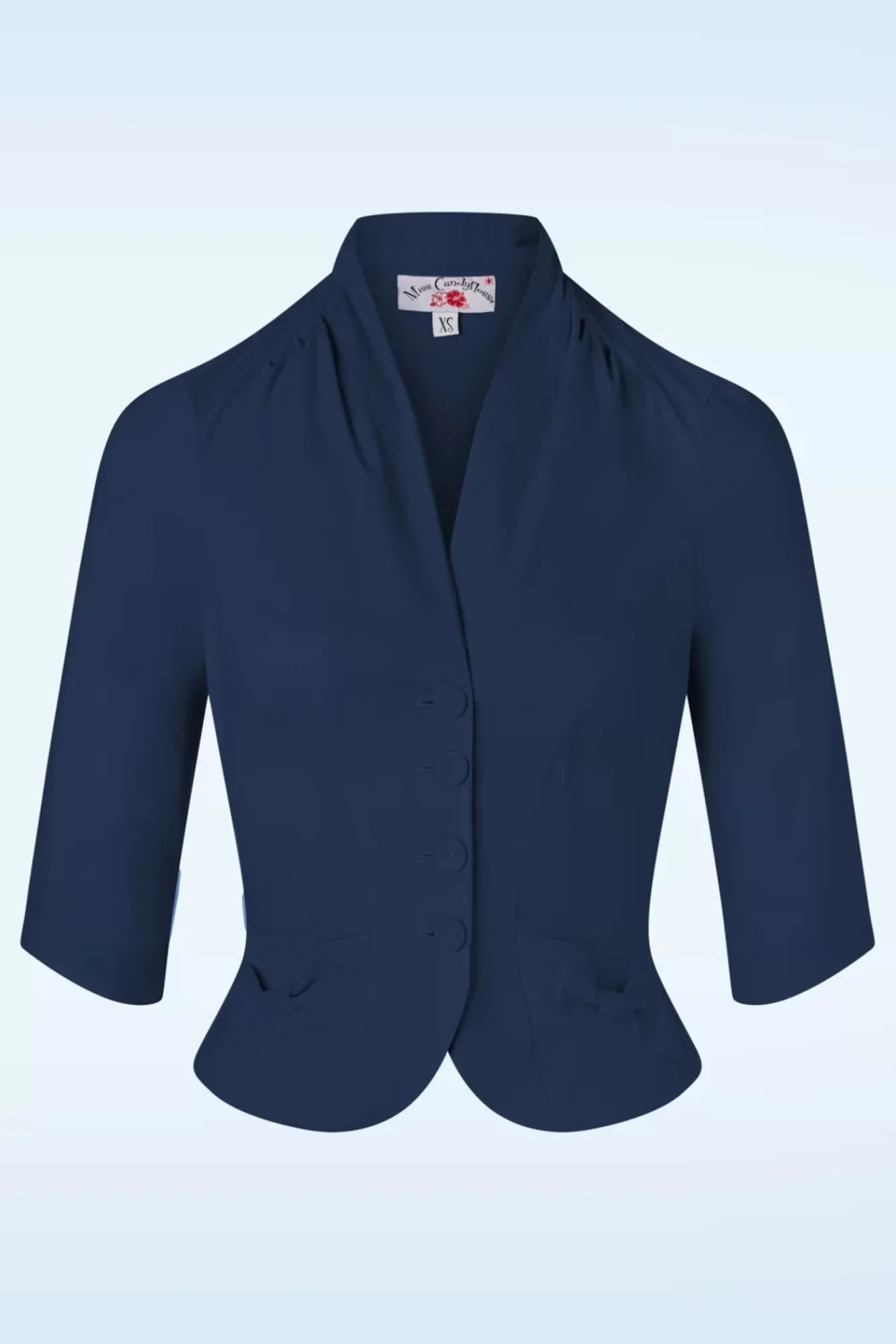 Egal Zu Welchem Rock Oder Welcher Hose Du Es Trägst, Dieses 50Er Jahre Liza Lou Blazer Jacket In Navy Wird Deinem Outfit Immer Den Letzten Schliff Verleihen. Denn Diese Jacke Bietet Viele Wunderschöne Details: 3/4 Ärmel, Raffungen An Den Schultern, Eine V-Halslinie Mit Stehkragen, Taschen Mit Schleifen-Detail Und Ein Peplum Detail Für Eine Feminine Figur. Hergestellt Aus Einem Festen, Aber Trotzdem Dehnbaren Stoff In Einem Navyblauen Viscosemix, Der Für Eine Phantastische Passform Sorgt. Hast Du Schon Ein Outfit Mit Diesem Blazer Im Sinn?