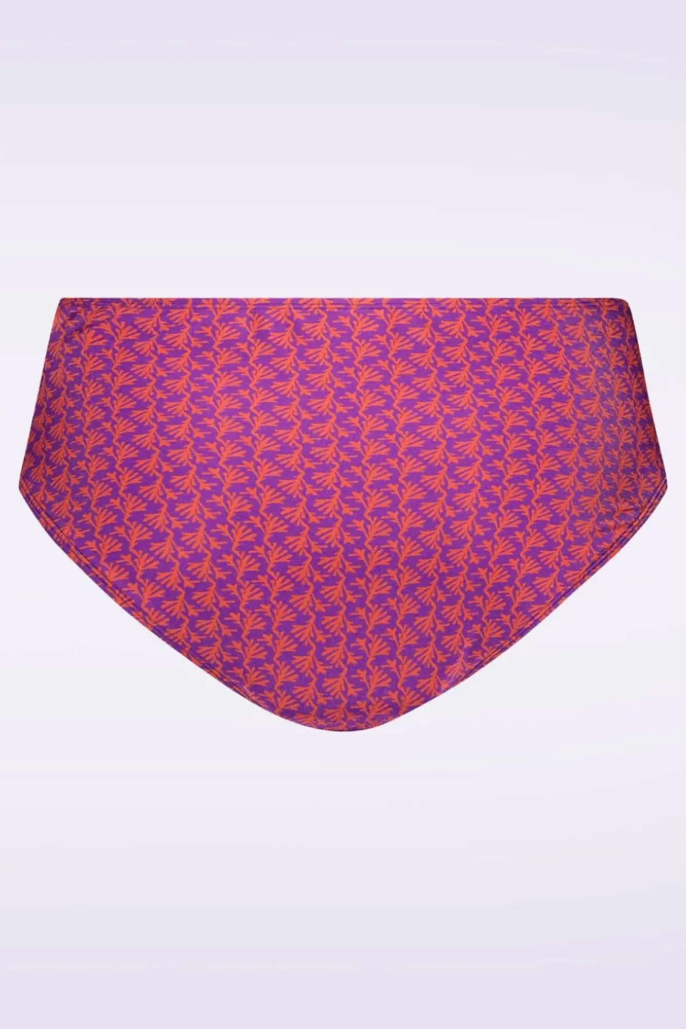 Neue Frühjahr/Sommer Kollektion ~ Mentally Onthe Beach! This Mid-Waist Bikini Bottom Featuring A Buckle Detail Is Made Of Asmooth And Stretchy, Recycled Purple Fabric With A Soft Sheen Featuring Anorange Coral Print That Is A Joy To Wear.