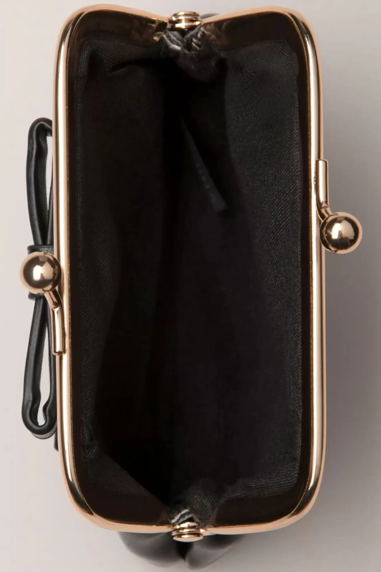 “Only Buy What You Neeed!“ Dieses ‚Traum‘-Portemonnaie Zum Beispiel 😉 Gefertigt Aus Schwarzem Kunstleder, Vollendet Mit Einer Schleife Und Einem Goldfarbenen Clipverschluss Für Den Wahren Vintage Look.