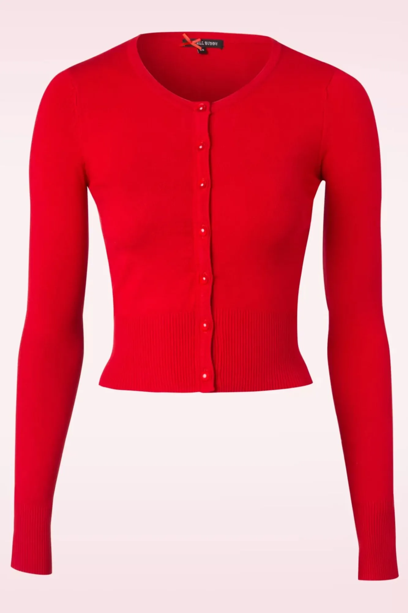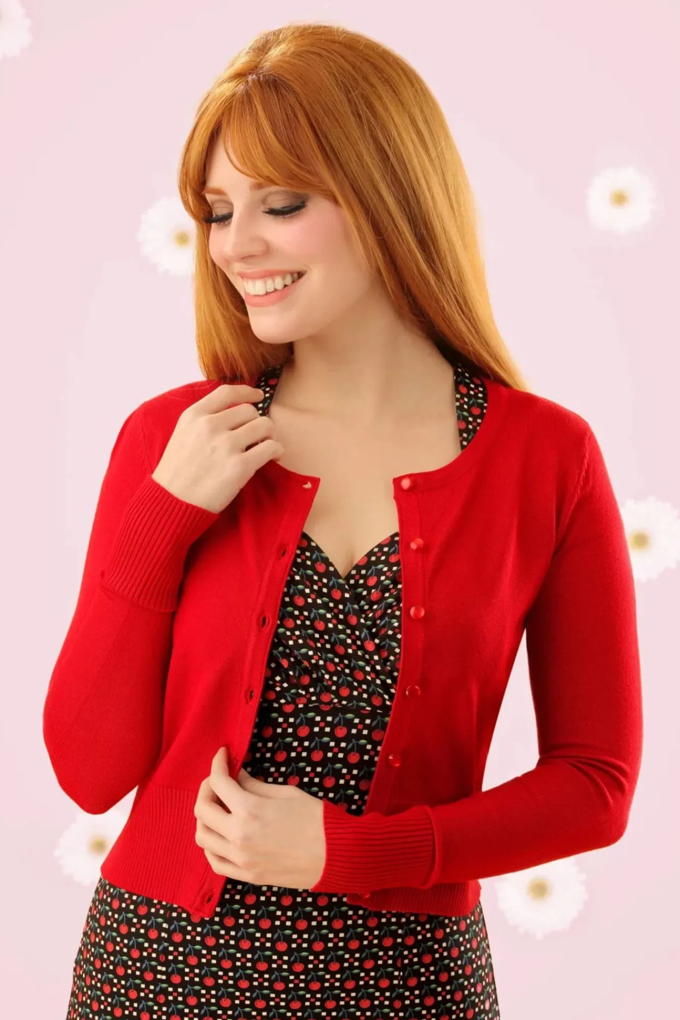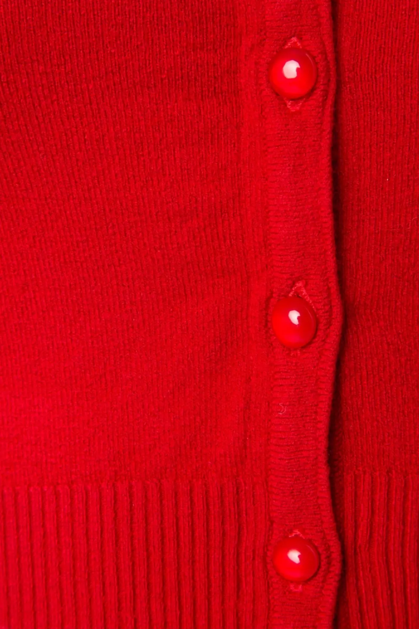 Der Paloma Cardigan In Red Ist Ein Umwerfender Cardigan Im Vintage 50S Stil! Man Hat Nie Zu Viele Cardigans! Dieser Kurze Cardigan Mit Langen Ärmeln Und Einer Runden Halslinie Endet Knapp Unterhalb Der Taille Und Ist Hergestellt Aus Einem Sehr Weichen, Stretchigen Stoff In Rot Für Eine Anschmiegende Passform. Ein Muss!