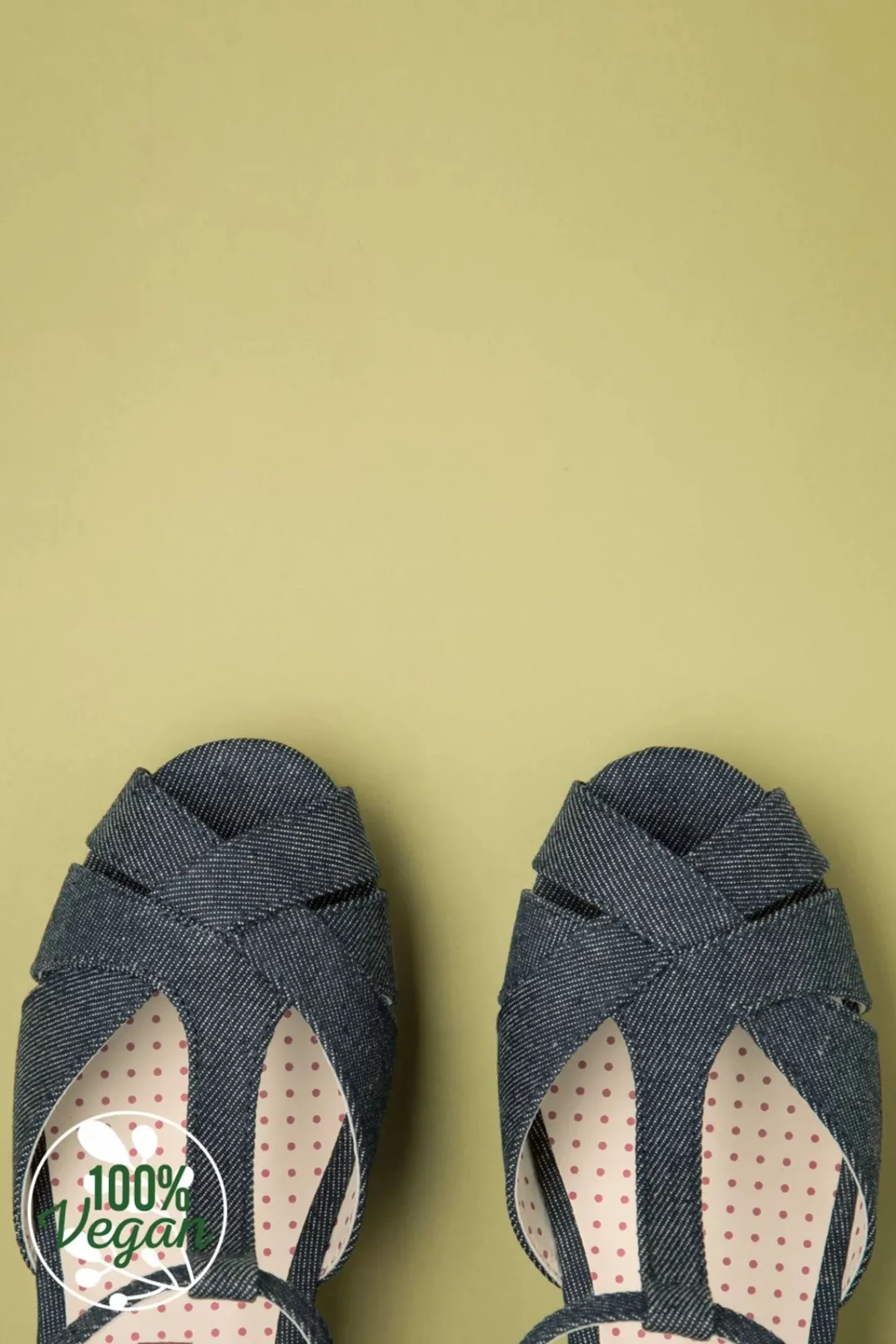 Wenn Du An Einen Vintage Inspirierten Keilabsatz Denkst, Denkst Du An Einen Elegante Peeptoe… Sowie Diese 60Er Kira Wedge Sandalen In Blau! Gefertigt Aus Einem Qualitativ Hochwertigen Denimblauen Stoff, Verziert Mit Zierlichen Cut-Outs Und Einem Verstellbaren T-Riemen. Dank Der Weichen Innensohle Und Dem Stabilen, Niedrigen Keilabsatz Möchtest Du Sie Am Liebsten Nie Wieder Ausziehen. Als Ob Dein Vintage-Loving Herz Jetzt Nicht Schneller Anfängt Zu Schlagen?!