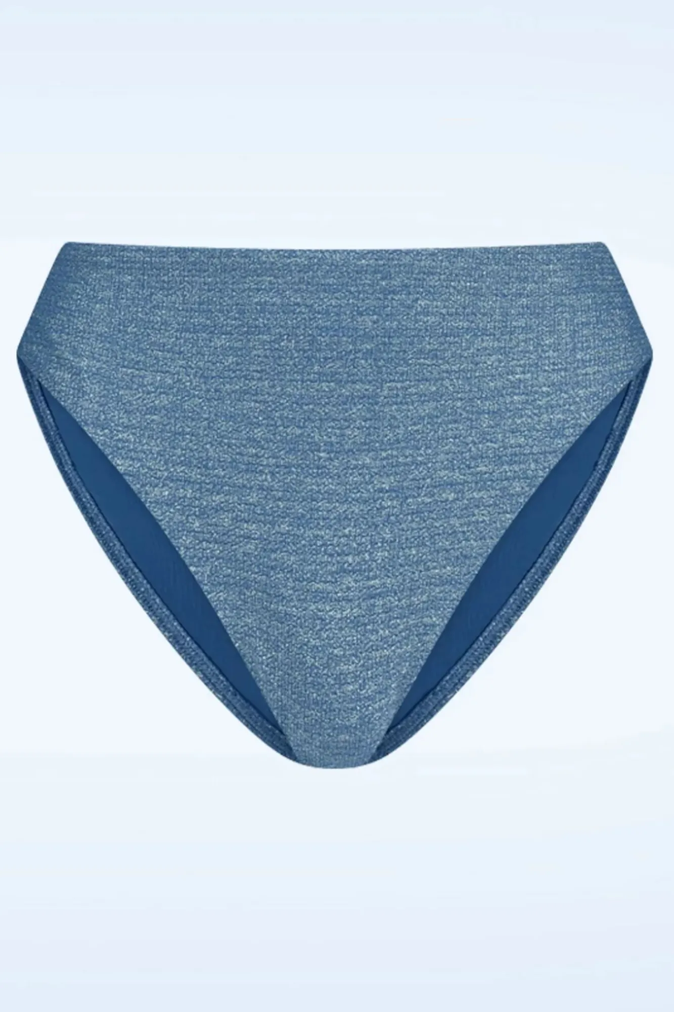 Der Strand Wird Dein Persönlicher Catwalk Sein, Wenn Du Diese Bikinihose Trägst! Mit Einer High Waist Taille Und Aus Einem Dehnbaren, Perfekt Anliegenden, Blauen Stoff Sorgt Sie, Mit Silberfarbenem Glitzer, In Der Sonne Für Ein Wenig Glamour. “Too Glam To Give A Damn!“