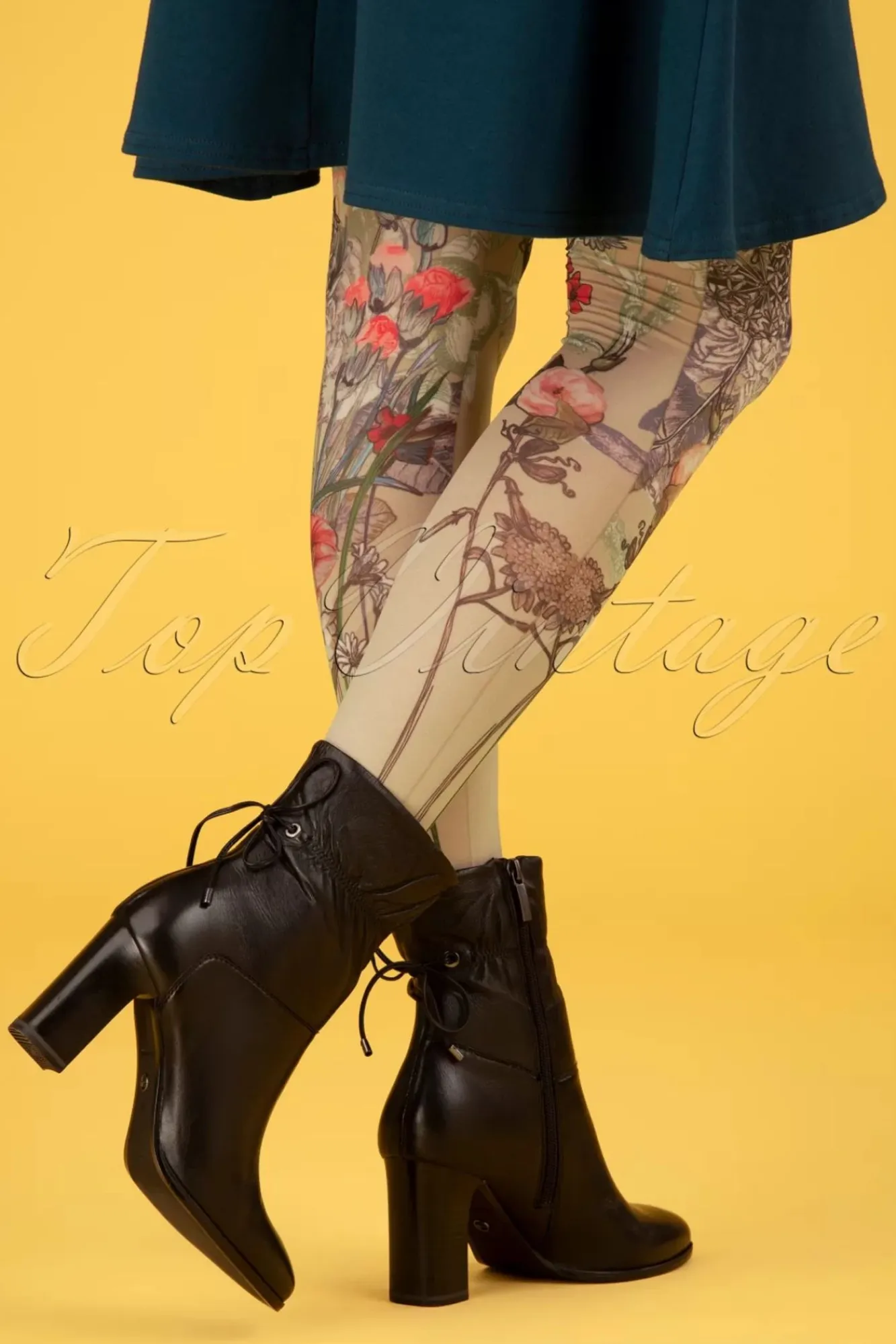 Mit Liebe Und Leidenschaft In Einer Werkstatt In Der Nähe Von Lyon Entworfen Und Bedruckt, Ist Diese Strumpfhose Eines Echtes Kunstwerke Für Deine Beine! Diese 50Er Dragées Strumpfhose In Beige Und Grün Aus Der ‚Que La Fête Commence‘ Kollektion Unserer Neuen Marke Marie Antoilette Lässt Deine Schönheit Noch Mehr Aufblühen. Diese Hellbeige Strumpfhose Zeigt Ein Lebendiges Und Buntes Blumenmuster, Umhüllt Deine Beine Auf Bequeme Weise Und Dehnt Sich Gut. “Bloom Baby, Bloom!“