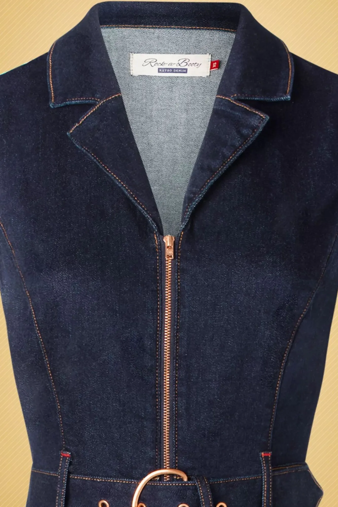 Rock-A-Booty Ist Bekannt Für ‚Unique Blue Dreams’… Dieser 50Er Audrey Jumpsuit In Dark Denim Ist Lässig, Verspielt Und Feminin Zugleich… Ein Traum, Der Wahr Wird, Also! Der Jumpsuit Hat Einen Klassischen, Spitzen Kragen, Einen Tiefen Ausschnitt, Der Ein Schönes Decolleté Zeigt, Einen Passenden Gürtel, Der Deine Taille Perfekt Betont Und Lange, Weit Ausgestellte Hosenbeine Mit Einer Schönen Pintuck Naht. Hergestellt Aus Einem Wunderschönen, Festen, Dunkelblauen Denim Baumwollmix, Der Leicht Stretcht Und Deswegen Perfekt Deinen Rundungen Folgt Und Mit Orangebraunen Und Roten Stickereien Und Einem Kupferfarbenen Reißverschluss Vorne Versehen Wurde. “We’Re All You-Nique… So No Need To Compare, But We’Ve Got To Say; Audrey Is Worth The Stare!“