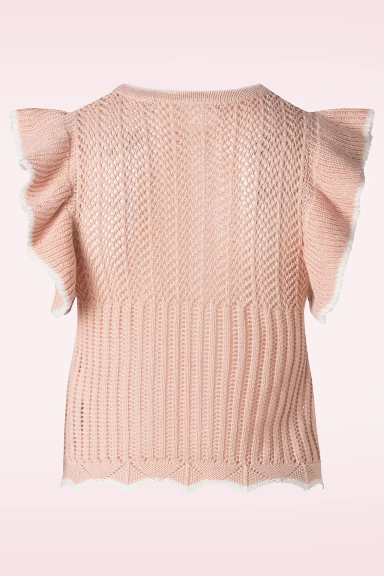 „All You Knit Is Love!“ Dieser Pullunder Wurde Aus Einem Grobgestrickten, Hellrosa Baumwollmix Mit Lochmuster Gefertigt Und Mit Rüschen An Den Schultern Versehen.