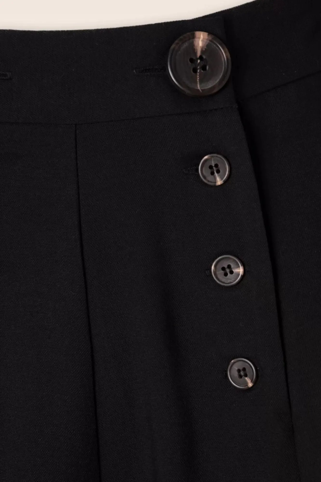 Diese 30S Murphy Culottes In Black Ist Super Klassisch! In 1931 Schockierte Elsa Schiaparelli Die Sportwelt Indem Sie Eine Art Hosenrock, Die Culotte, Für Die Bekannte Tennisspielerin Lili De Alvarez Entwarf. Und Jedes Darauffolgende Jahrzehnt War Dieses Kleidungsstück Immer Wieder Angesagt Und Deshalb Sind Wir Elsa Immer Noch Dankbar. Murphy Wird In Taillenhöhe Getragen Und Sie Wirkt Sehr Schmeichelnd Mit Den Weiten, Angenehmen 3/4 Hosenbeinen. Aus Einer Geschmeidigen, Schwarzen Viskosemischung (Nicht Dehnbar) Die Herrlich Trageleicht Ist. Mit Dieser Culotte Kannst Du Deinen Stil Endlos Variieren, Siehst Du Die Vielen Unterschiedlichen Looks Schon Vor Dir? 😉