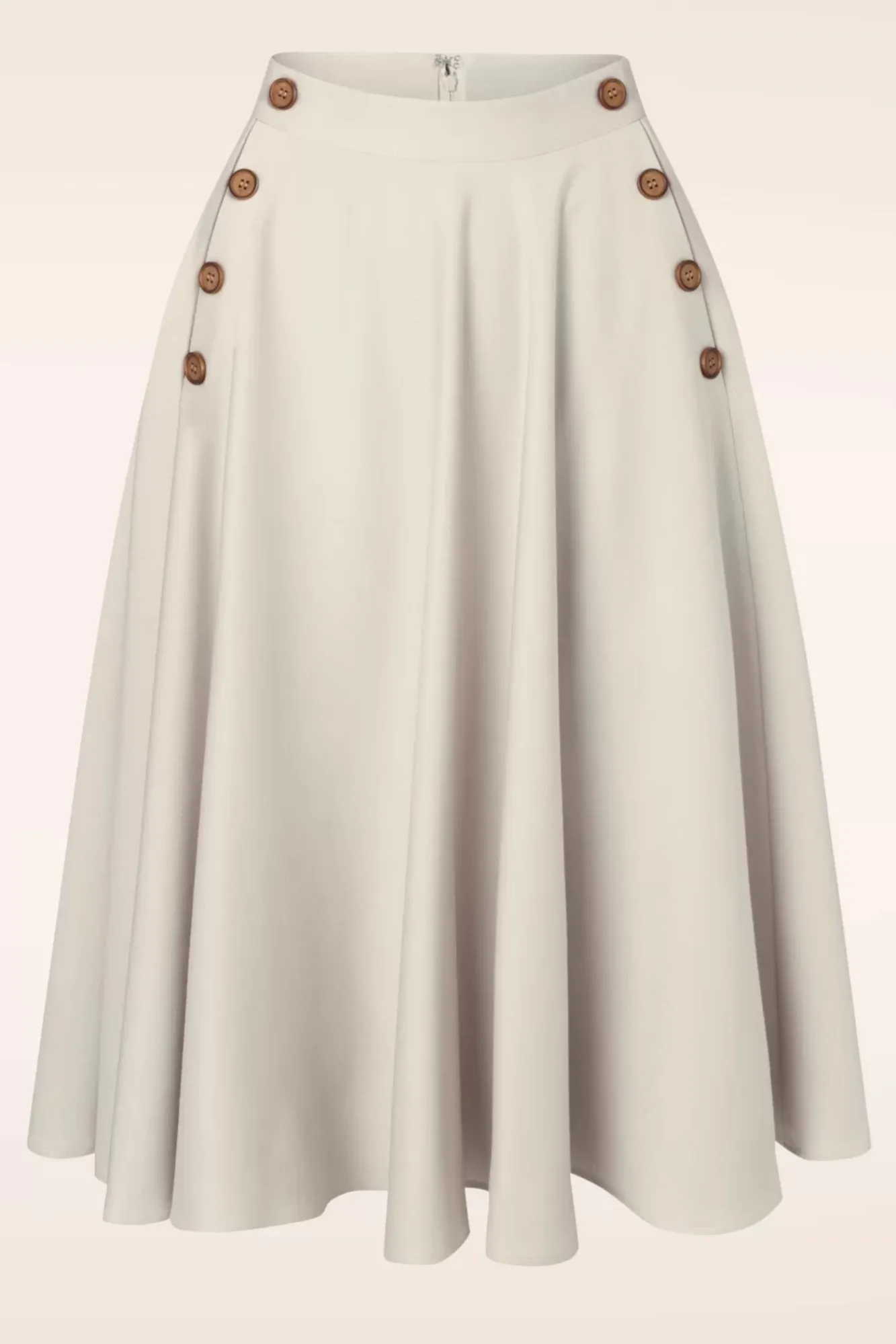 Klassisch, Zeitlos Und Total Feminin! Dieser Polly May Swing Rock In Off White Lässt Sich Unendlich Kombinieren! Polly Trägt Sich Hochtailliert Und Entfaltet Sich Ab Der Taille In Einen Eleganten, Flotten Swing Rock Mit Seitlich Angebrachten Zierknöpfen Und Praktischen Seitentaschen. Hergestellt Aus Einem Angenehm Fallenden Stoff In Off-White (Stretcht Kaum), Der Sich Herrlich Trägt. Dieses Swing Schätzchen Wird Ganz Bestimmt Deiner Neuer Sommerliebling!