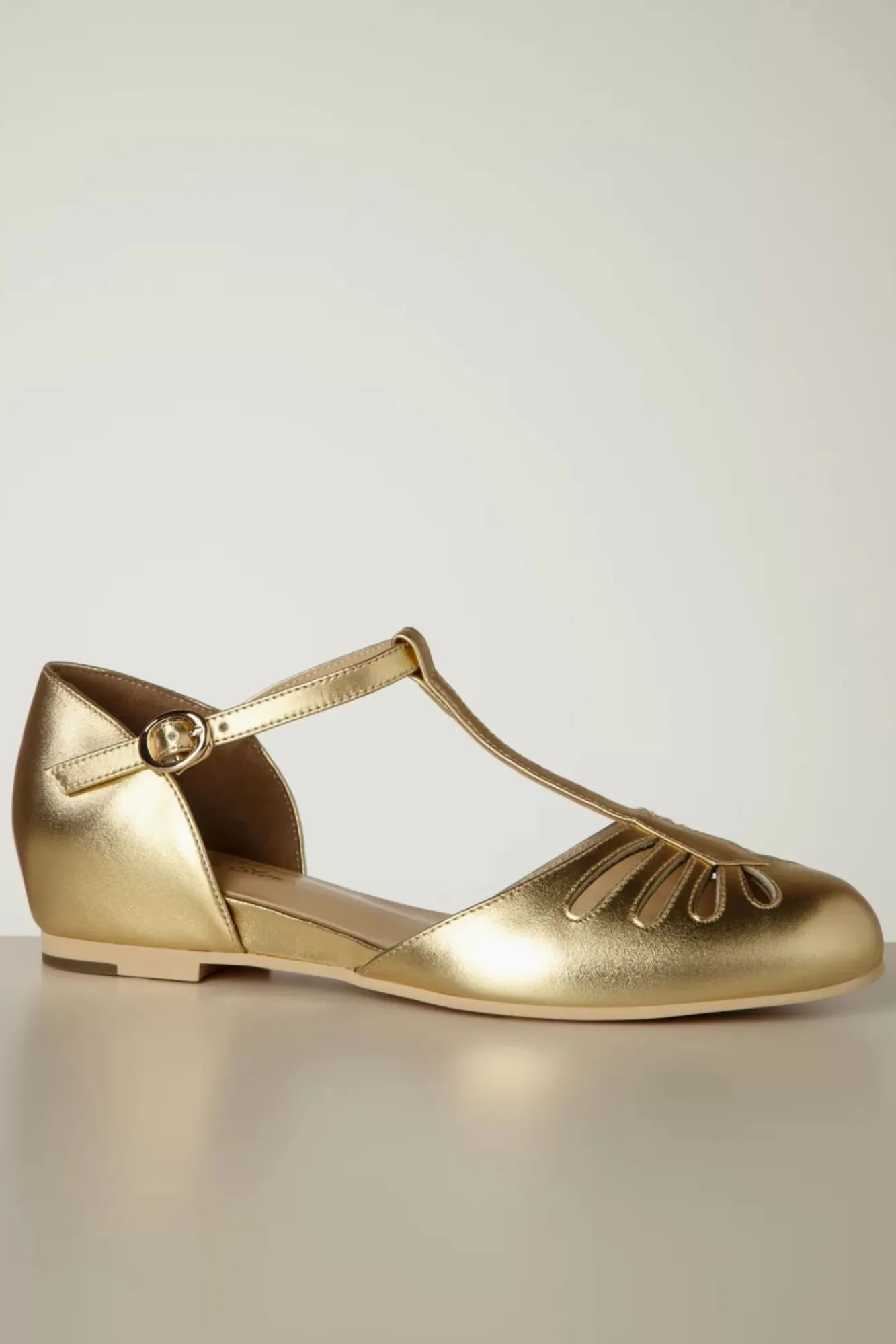 Benannt Nach Einem Der Meist Reichen Länder In Südostasien Wurden Ballerinas Mit T-Riemen Und Zierlichem Lochmuser Aus Qualitativ Hochwertigem Leder In Gold Gefertigt. Betrete Die Neue Saison Voller Style!