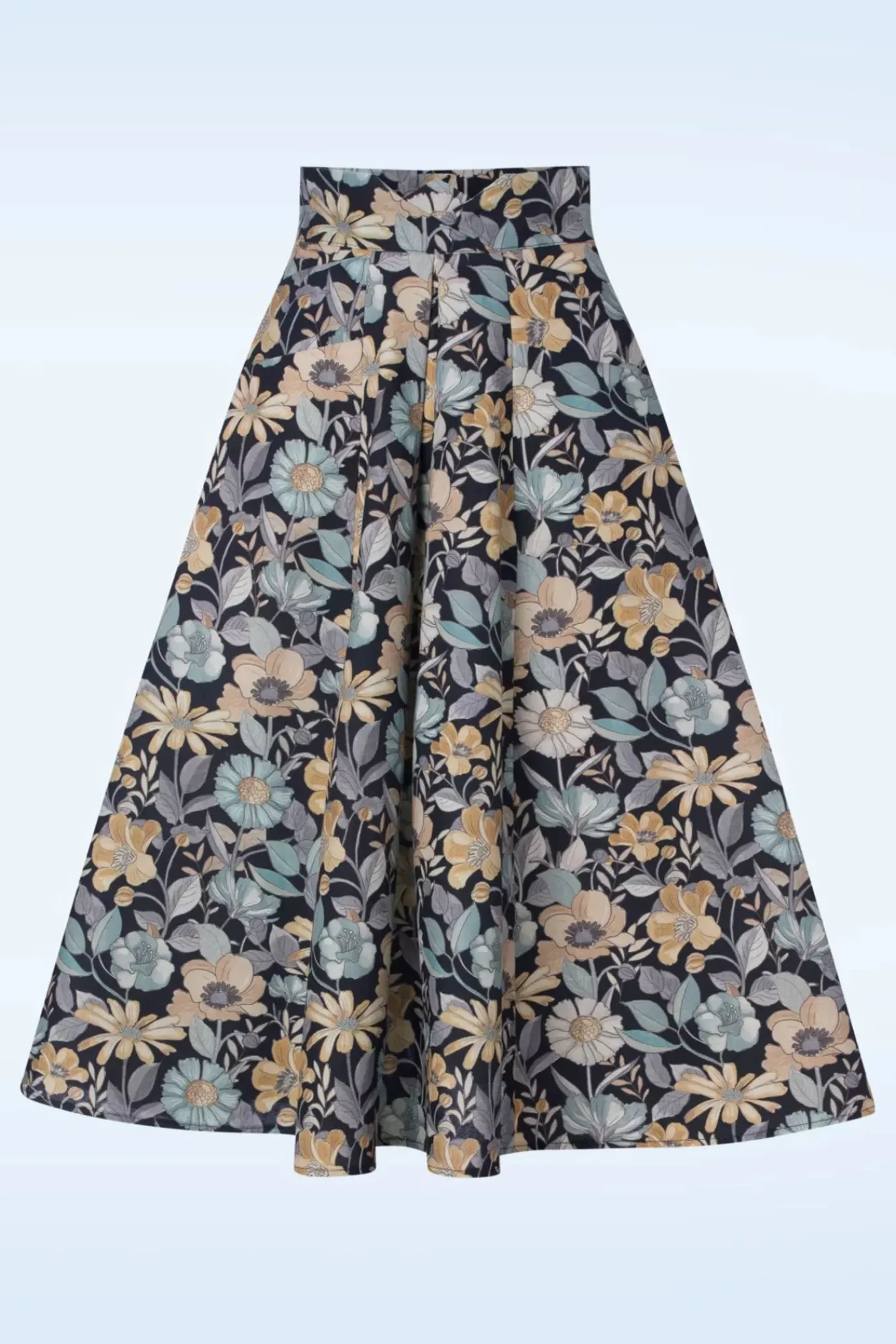 Neue Frühjahr/Sommer Kollektion ~ Kreiere Einen Stylischen Look Mit Vania Lee!&Nbsp; Dieser Rock – Aus Der “Viva Rita“ Kollektion Der Marke Miss Candyfloss – Hat Sich Von Der Legendären Amerikanischen Schauspielerin Und Tänzerin Rita Hayworth Inspirieren Lassen!&Nbsp;&Nbsp;Dieser Prachtrock Wurde Aus Einer Festen, Aber Luftigen, Marineblauen Baumwolle (Stretcht Nicht) Gefertigt Und Elegant Mit Blumen Gemustert.