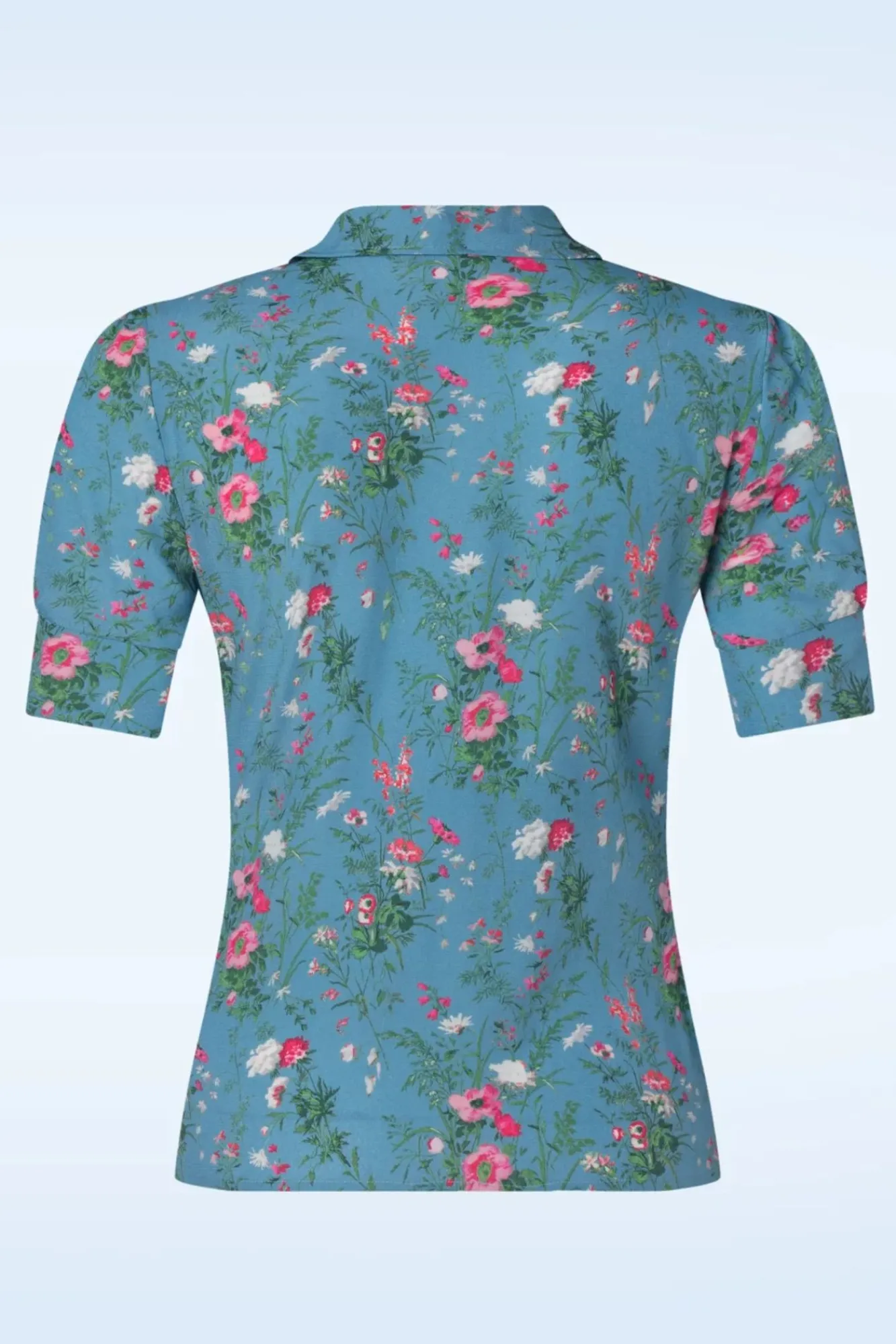 Blühe Auf In Dieser Fröhlichen Bluse! Sie Hat Einen Kleinen Bubikragen, Kurze Puffärmel Und Wurde Aus Einer Angenehmen, Luftblauen Ecovero Viskose Gefertigt (Stretcht Nicht!), Die Mit Wunderschönen Blumen Gemustert Wurde. Liebe Auf Den Ersten Blick!