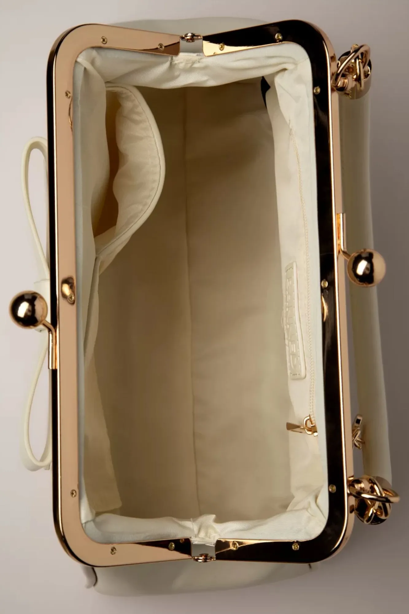 “Just A Daydream Away!“ Diese Kleine Schwester Der Klassischen American Vintage Tasche Hat Einen Auffällig Goldfarbenen Metall-Clipverschluss Für Den Wahren Vintage Look Und Wurde Aus Einem Matten Kunstleder In Creme Gefertigt Und Mit Einer Süßen Schleife Vollendet.