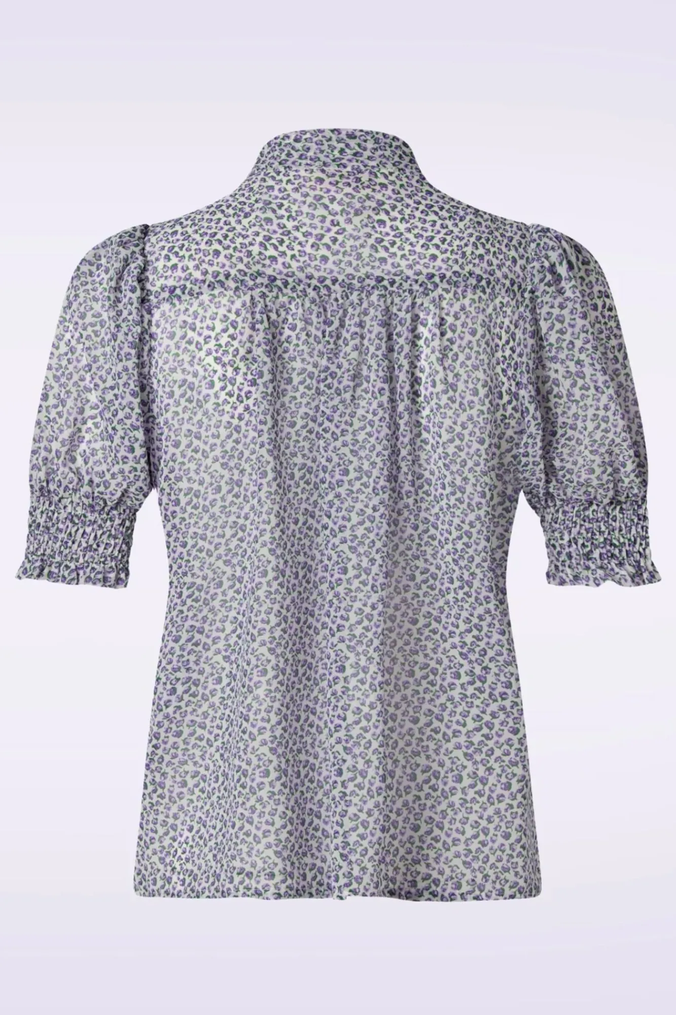 Wie Süß Ist Denn Diese Belia Rosetta Tie Neck Bluse In Lilac?! Sie Hat Einen Bindekragen, Eine Knopfreihe Und Kurze Puffärmel Und Wird Mühelos Dein Neuer Liebling Sein. Gefertigt Aus Einem Angenehmen, Non-Stretchy, Weißem Stoff, Der Sich Herrlich Trägt Und Mit Einem Muster Kleiner Lila Blümchen Verziert Wurde. Spürst Du Schon Die Schmetterlinge In Deinem Bauch? 😉
