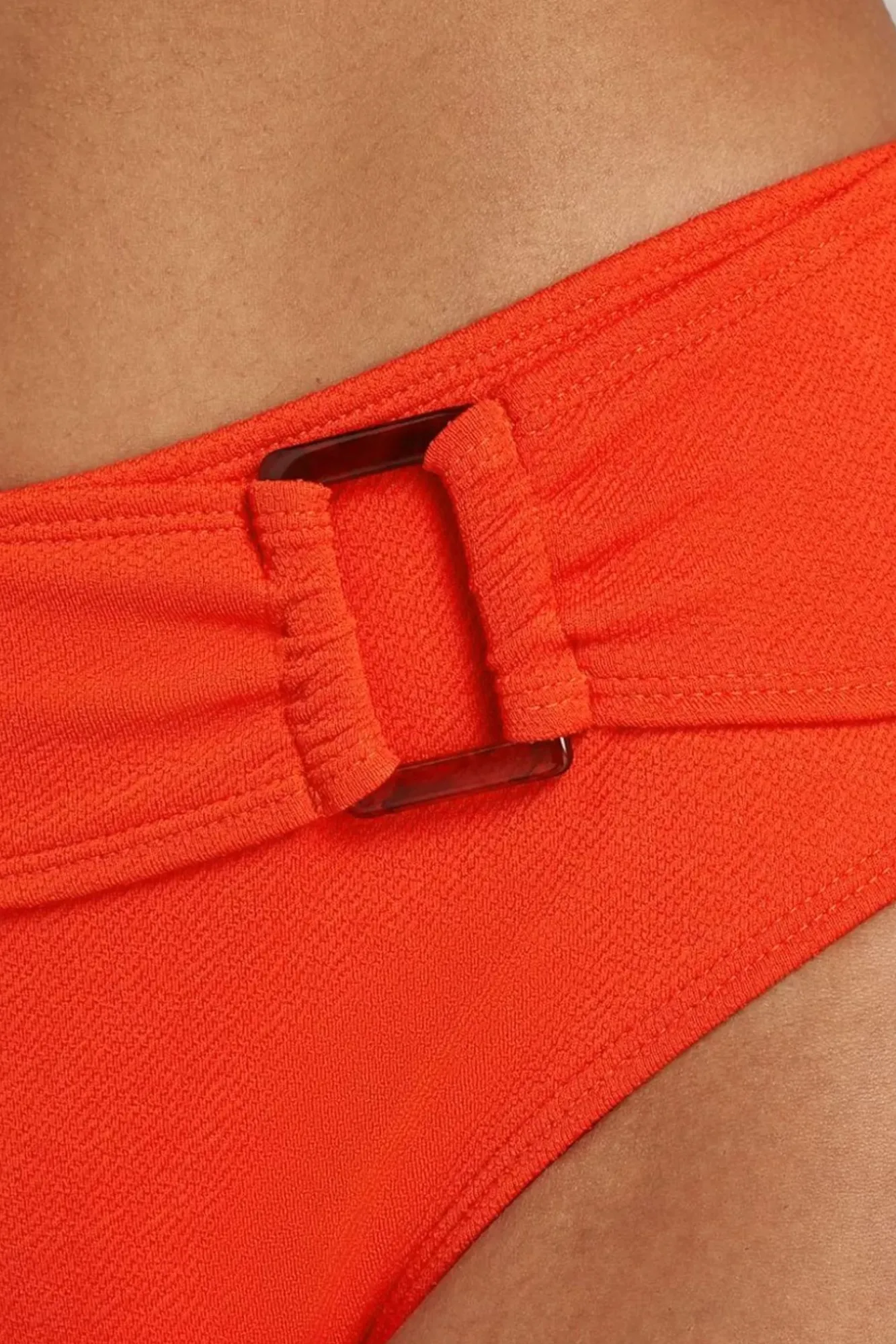 Neue Frühjahr/Sommer Kollektion ~ Mentally Onthe Beach! This Mid-Waist Bikini Bottom Featuring A Buckle Detail Is Made Of Asupple And Stretchy, Recycled Textured Fabric In Light Red That Hugs Yourcurves And Is A Dream To Wear.