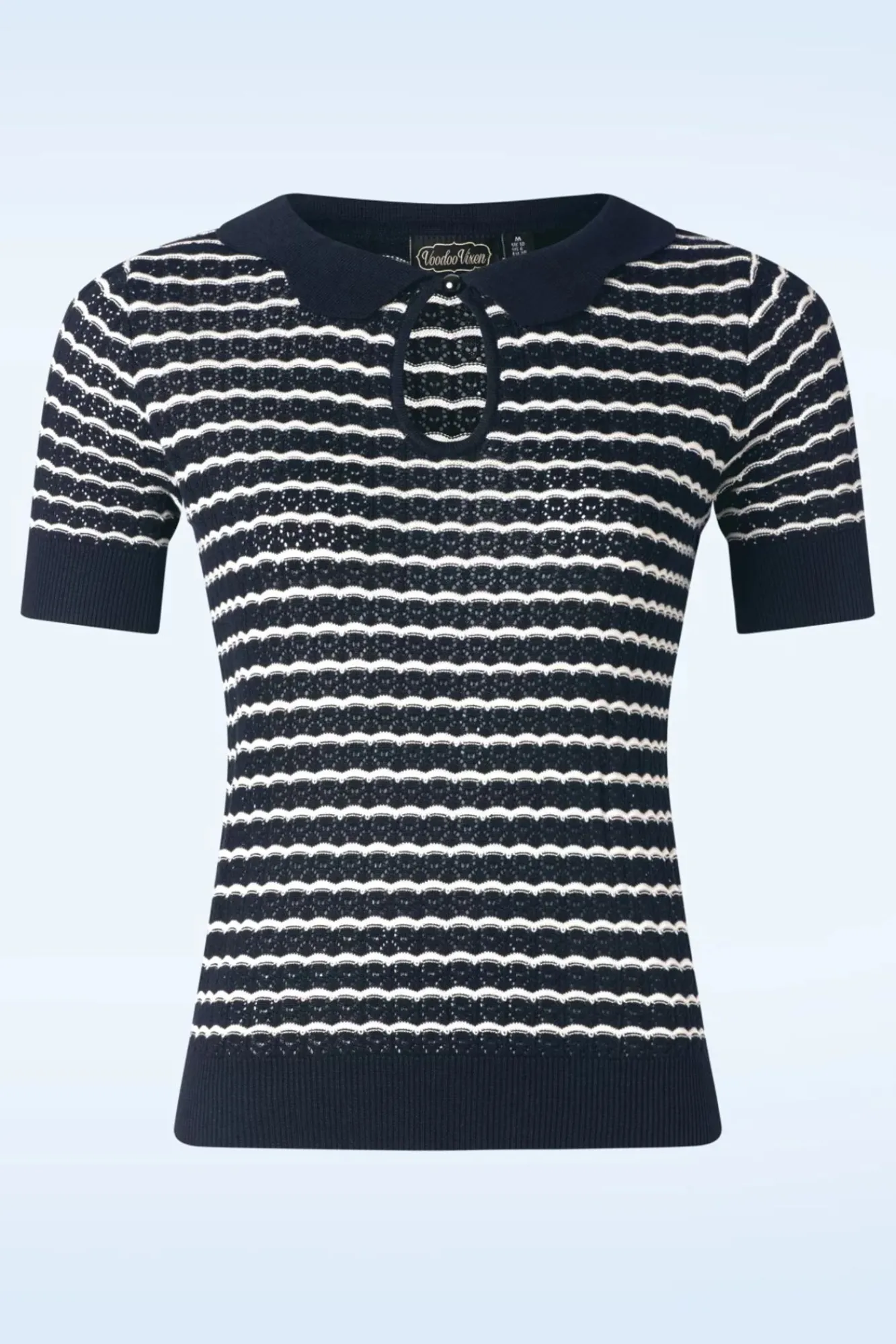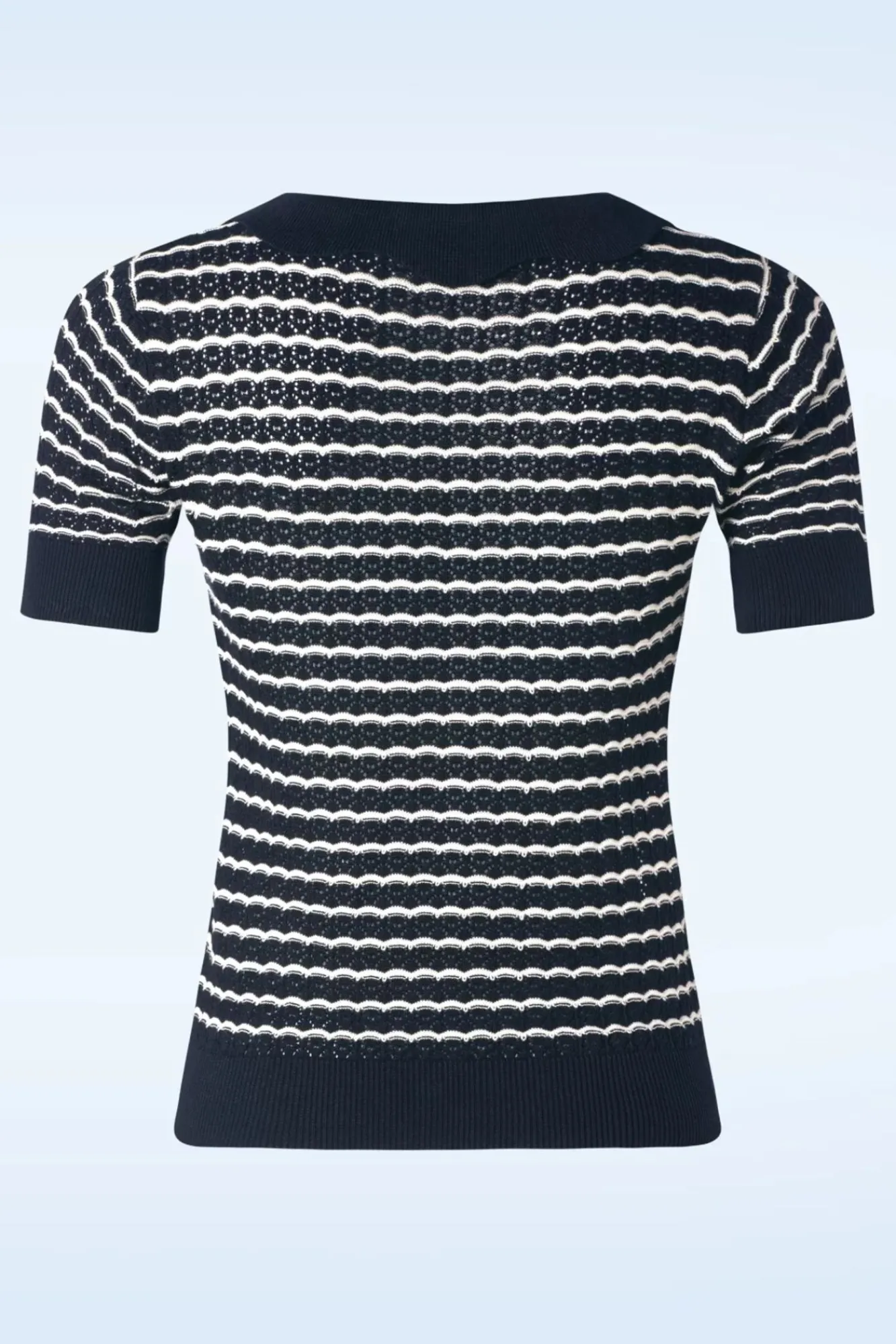 Herzallerliebst! – Dieser Süße Pullover Trägt Sich Herrlich, Denn Er Wurde Aus Einem Dehnbaren, Grobgestrickten, Marineblauen Viskose-/Baumwollmix Mit Lochmuster Gefertigt.