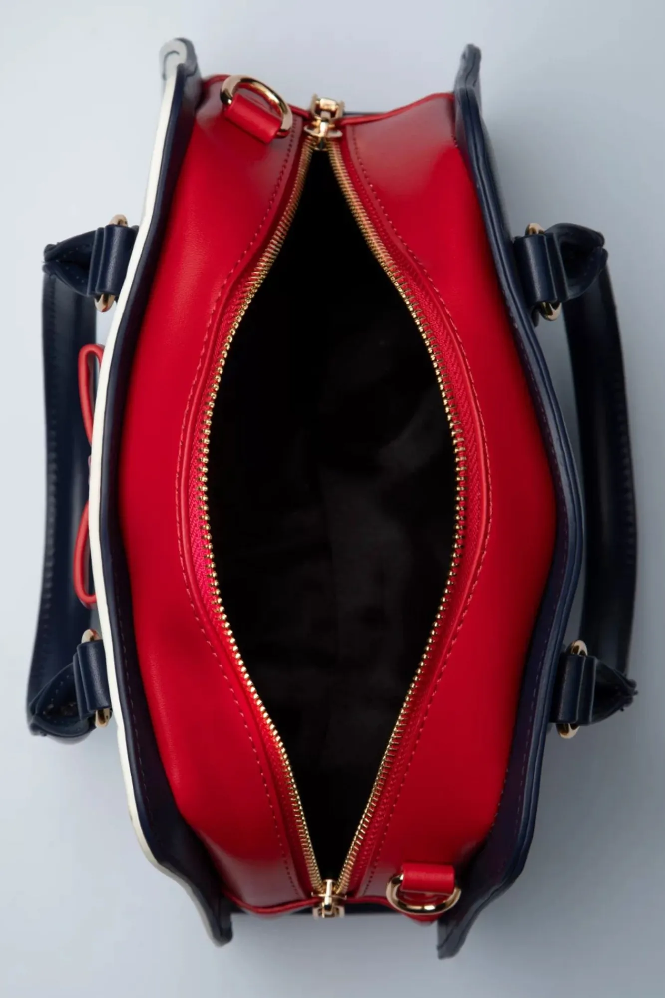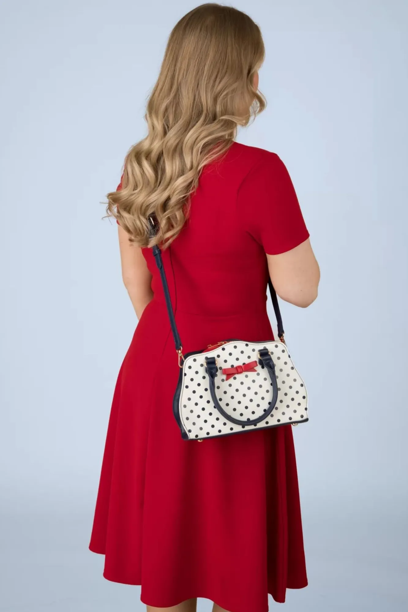 Herzallerliebst! Diese Süße, Kleine Handtasche Mit Polka Dots Wurde Aus Weißem Kunstleder Mit Roten Und Marineblauen Details Gefertigt. Auch Hat Sie Einen Abnehmbaren, Längeren Gurt, Damit Du Dieses Schätzchen Ganz Verspielt Über Deine Schulter Hängen Kannst.