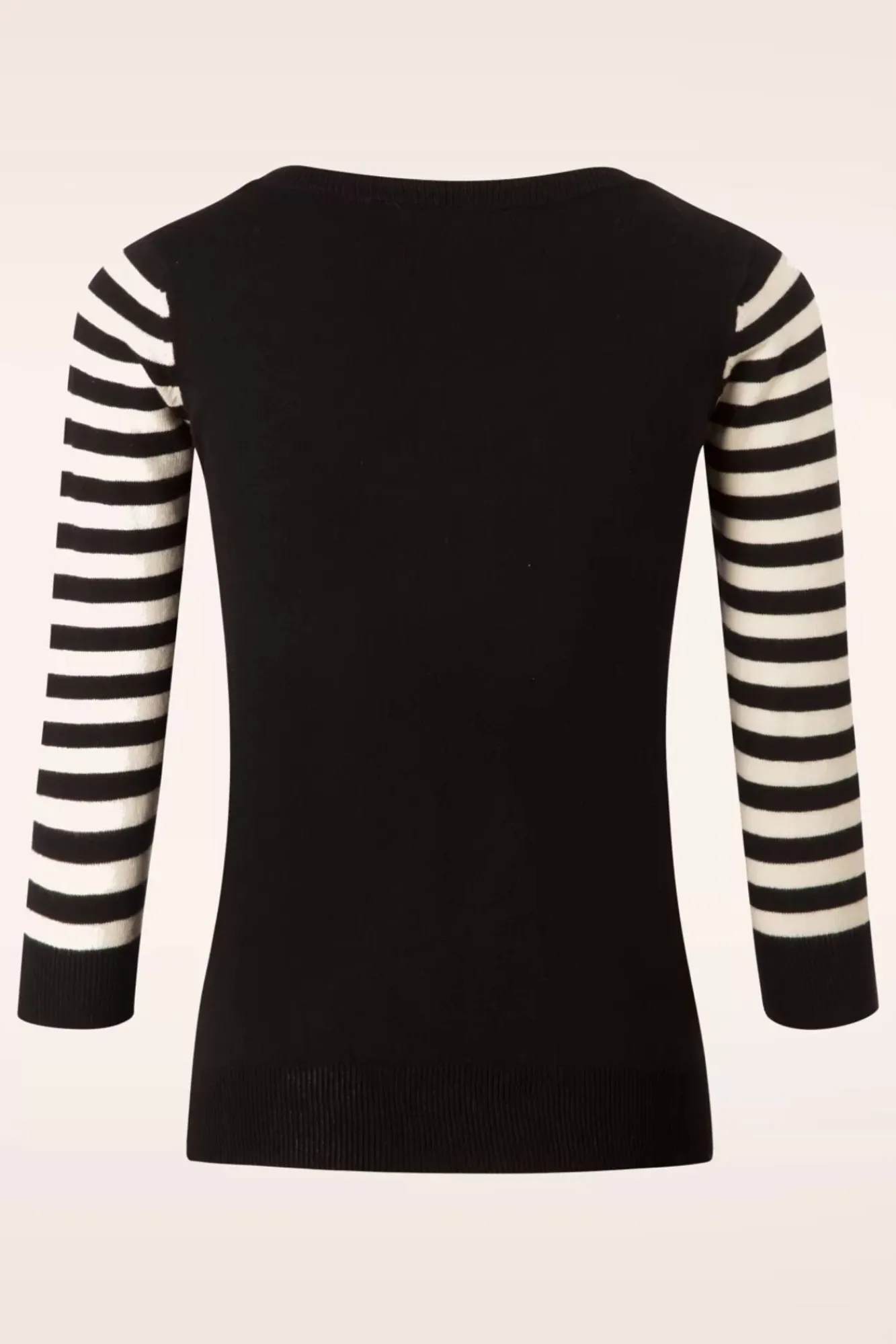 Go Retro Mit Diesem 60S Debbie Catstriped Sweater In Black! Ein Einziger Blick Genügt… Dein Herz Wird Sofort Schneller Schlagen, Miauw! In Einem Klassischen Schnitt Mit Einem Runden Halsausschnitt Und 3/4 Ärmeln Und Versehen Mit Einer Elastischen Rippborte Für Eine Schöne Passform. Hergestellt Aus Herrlich Anschmiegsamer Und Dehnbarer 100% Baumwolle In Schwarz Mit Einer Abbildung Eines Niedlichen Katzenköpfchens In Elfenbein Auf Der Vorderseite. Einfach Cat-Tas-Tisch!