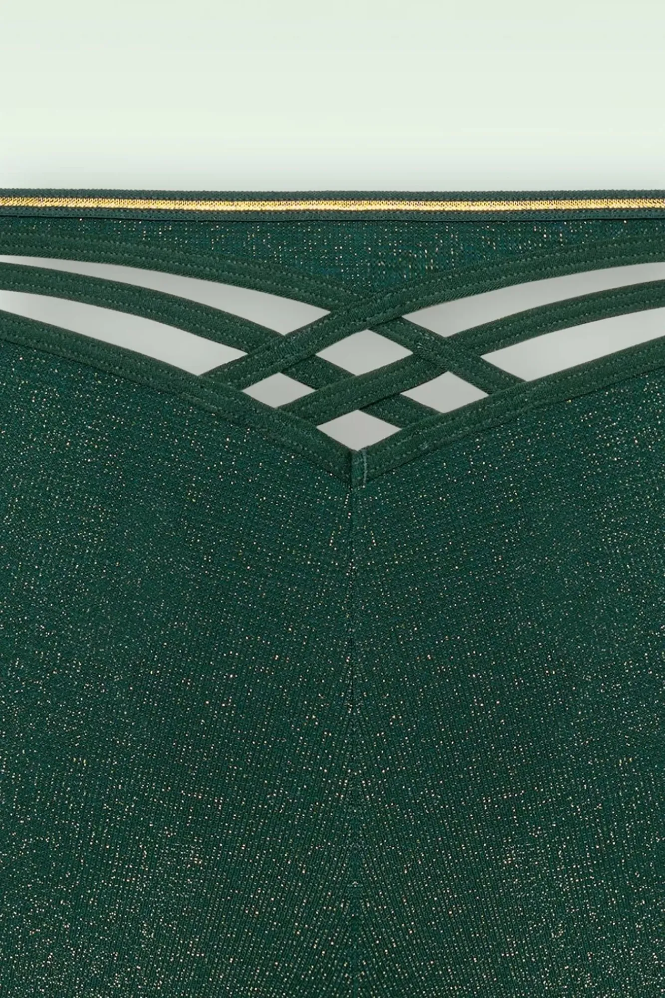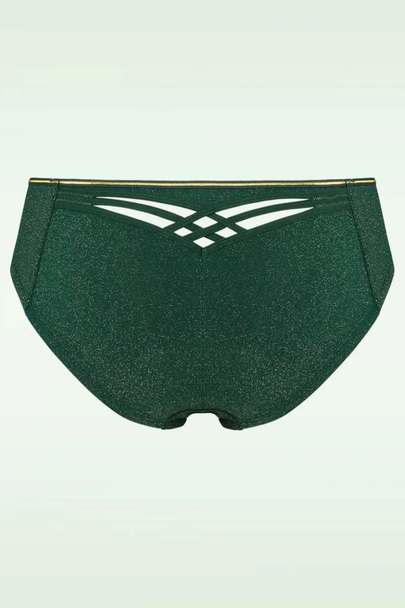 Zeige Dich In Diesem Dame De Paris High Brazilian Slip In Grün Und Gold! Er Wurde Aus Einem Dehnbaren, Tannengrünen Stoff Mit Einem Feinen Goldenen Lurexglitter Gefertigt Und Ein Großartiges Spiel Der Linien Ziert Die Rückseite Des Slips! Marlies Hat Sich Beim Entwurf Dieser Kollektion Von Der Glorreichen Notre Dame Kathedrale Inspirieren Lassen, Zeitgenosse Der Hildegard Von Bingen.