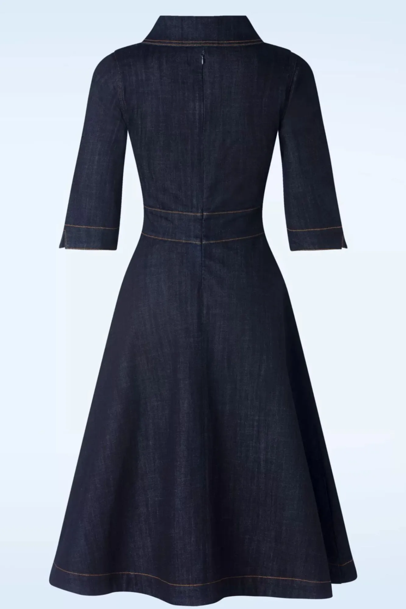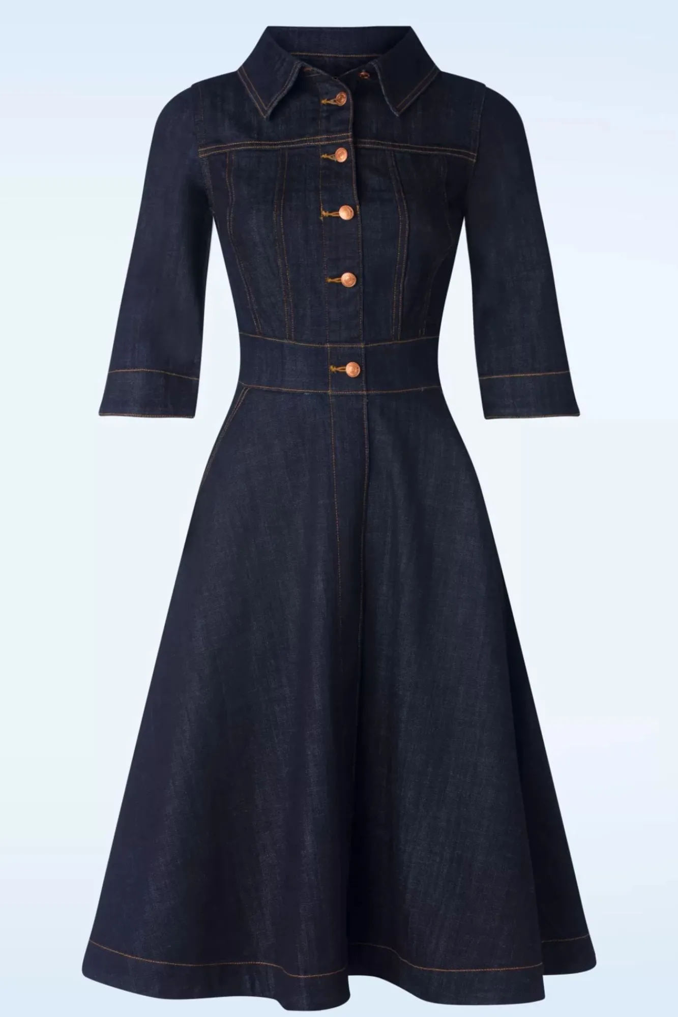 Unsere Eigene Jeansmarke Rock-A-Booty Ist Bekannt Für Ihre ‚Unique Blue Dreams’… Und Dieses Lauren Swing Kleid In Dark Denim Ist Ein Denim Traum, Der Unser Herz Höher Schlagen Lässt! Es Wurde Aus Einem Festen, Dunkelblauen Bio-Baumwollmix Mit Leichtem Stretch Gefertigt, Der Sich Herrlich Trägt Und Mit Gelben Nähten Für Den Authentischen Touch Vollendet Wurde.