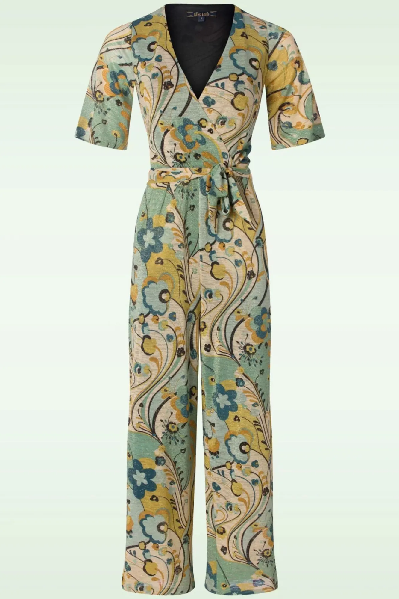 Schau Mal, Wie Schön Dieser Zita Frenzy Jumpsuit Ist! Gefertigt Aus Einem Feingestrickten, Dehnbaren Und Angenehm Fallenden Stoff, Der Mit Retro Blumen Gemustert Und Mit Einem Eingearbeiteten Glitzerfaden Vollendet Wurde.
