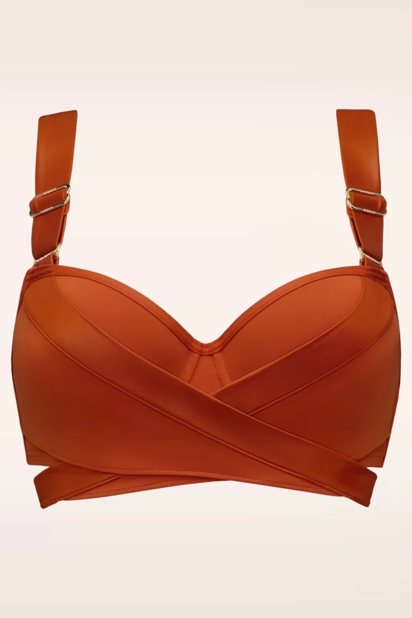 Vergiss‘ Das Scheinwerferlicht… Sonne, Meer Und Strand Sind Alles, Was Du Brauchst, Um In Diesem Push-Up Bikini Top Zu Strahlen! Der Rostorangene, Matte Stoff Kontrastiert Mit Den Glänzenden Bändern Und Verleiht Dem Bikinioberteil Einen Sinnlichen Und Luxuriösen Look. Die Breiteren Träger Bieten Extra Komfort Und Wurden Mit Klassischen, Goldfarbenen Details Verziert. Die Push-Up Cups Mit Bügeln Und Pads Verleihen Deiner Brust Extra Halt Und Sorgen Für Ein Atemberaubendes, Tiefes Dekolleté. Hergestellt Aus Einem Luxuriösen, Zweilagigen, Recycelten Stoff, Der Sich Herrlich Trägt Und Perfekt Anliegt. Vergiss‘ Nicht, Einen Sinnlichen Blick Über Deine Schulter Zu Werfen, Wenn Du Von Deinem Liegestuhl Zum Meer Gehst… Gib Dem Publikum, Was Es Will! 😉