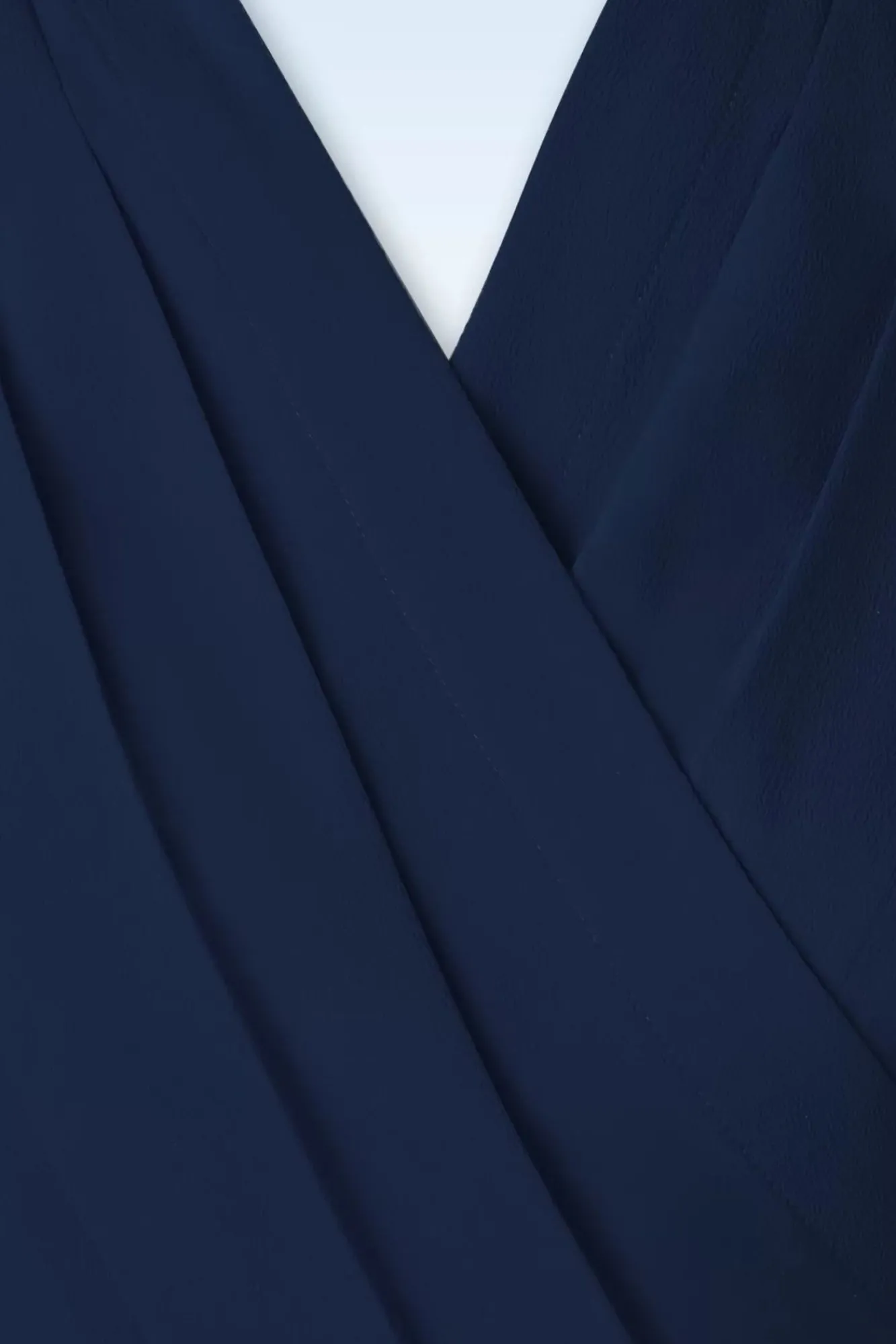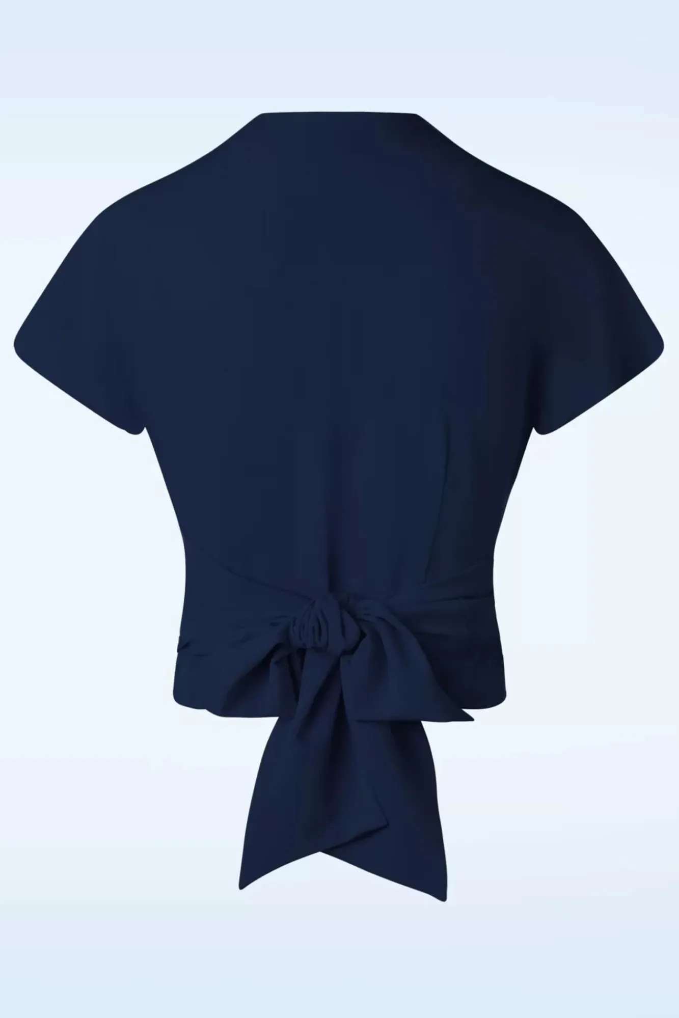 Diese 50Er Darla Short Sleeve Wrap Bluse In Navy Ist Eine Der Schönsten Vintage Inspirierten Blusen, Die Du Je Sehen Wirst! Diese Wickel-Beauty Hat Elegante Flache Falten, Kurze Kimono Stil Ärmel Und Lässt Sich Mit Einem Schleifenband Schließen. Hergestellt Aus Einem Angenehmen, Navyblauen Stoff (Stretcht Nicht) Mit Der Optik Von Crêpe De Chine Für Den Wahren Authentischen Touch. Kombiniere Es Mit Einem Bleistiftrock Oder Einer High-Waist Hose Mit Weiten Hosenbeinen Für Einen Klassischen 50Er Stil!