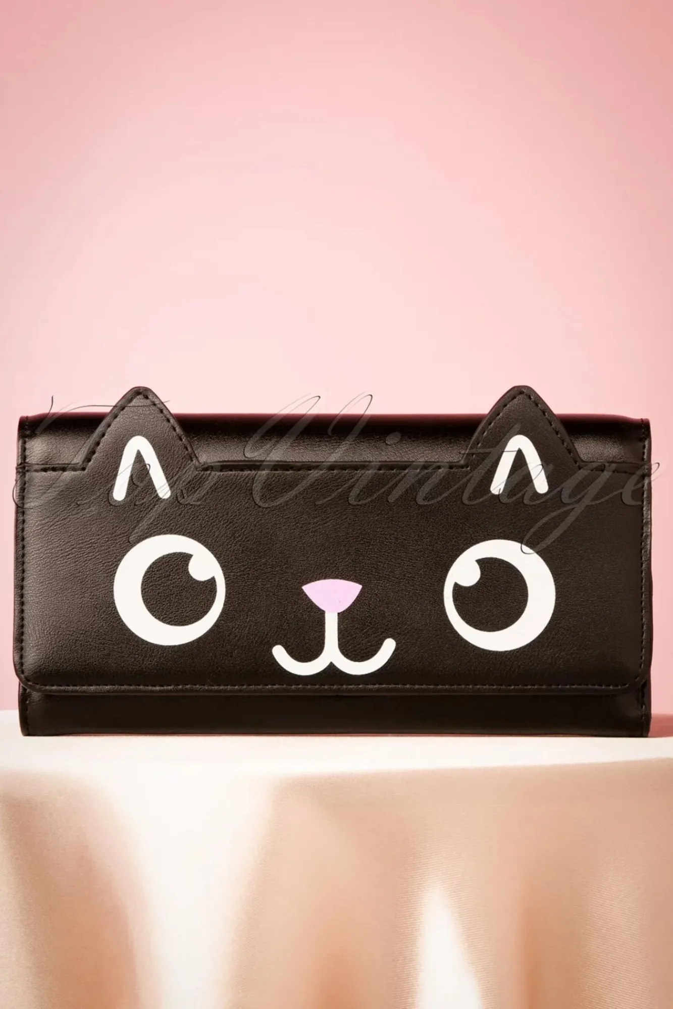 Die Katze Aus Dem Sack Lassen? Dieses Hübsche Und Praktische 50S Onyx Wallet In Black Solltest Du In Der Tasche Lassen ;-)! Die Applikation Eines Katzengesichts In Weiß Und Rosa Auf Der Vorderklappe Macht Aus Diesem Portemonnaie Ein Lustiges Und Verspieltes Accessoire. In Einem Praktischen Format Und Hergestellt Aus Schwarzem Leder-Imitat Von Einer Schönen Qualität. Mit Einem Extra Fach Mit Reißverschluss Für Münzen Und Platz Für 12 (Bank) Karten Und Passfotos. Zwei Fächer Für Banknoten Und Kassenzetteln. Ergänzt Mit Einem Druckknopf-Verschluss Damit Dein Geld Sicher Aufbewahrt Wird. “Miau,Miau.. I Want It… Now!“