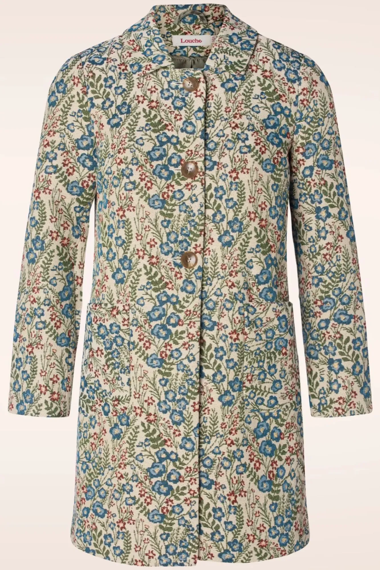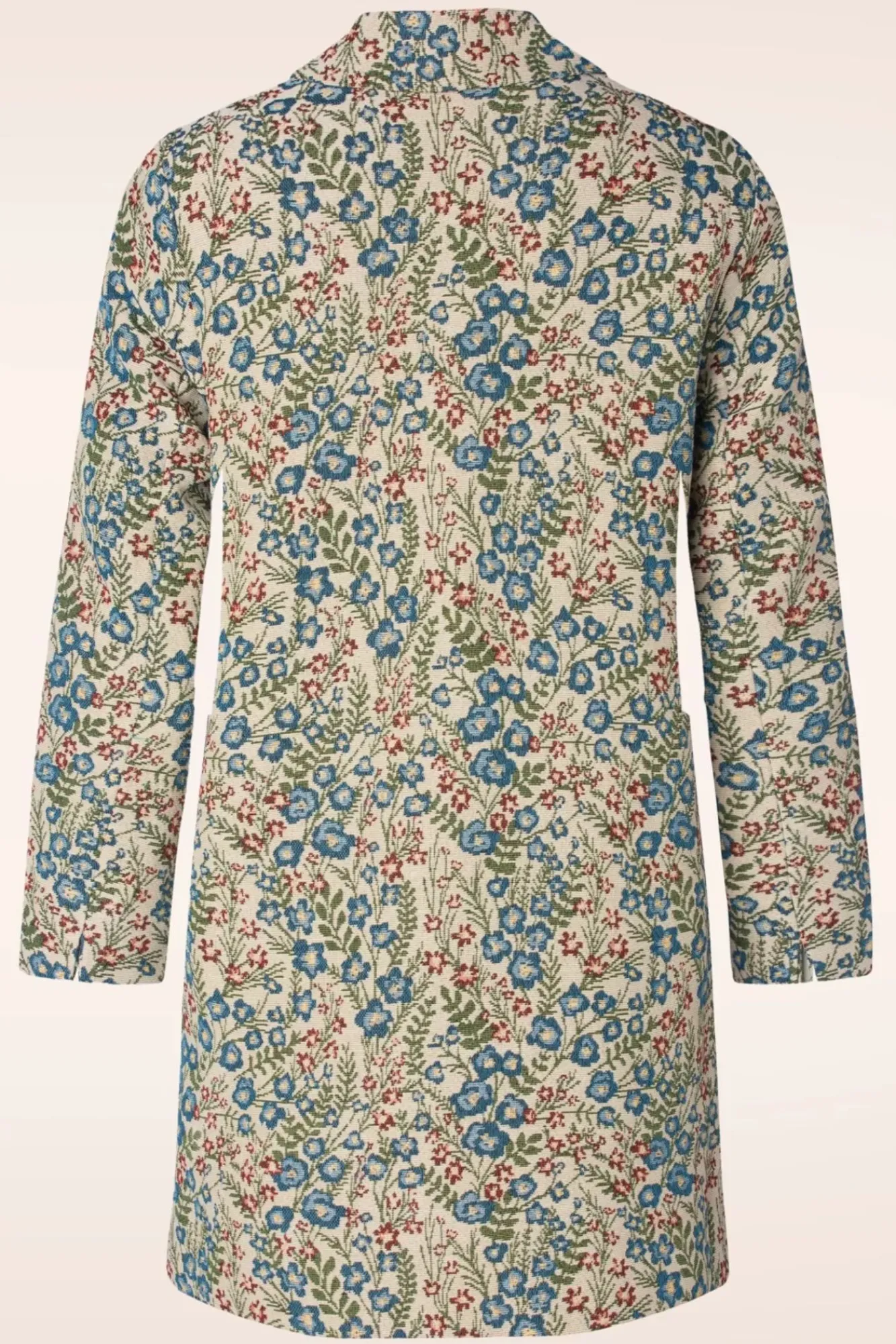 Neue Frühjahr/Sommer Kollektion ~ Dein Modischer Partner Für Kühlere Frühlingsabende! – Dies Wird Diesen Frühling Garantiert Dein Neuer Favoriter Übergangsmantel Sein! Gefertigt Aus Einem Etwas Dickeren Und Festen, Cremefarbenen Jaquard Stoff (Stretcht Nicht!), Der Mit Farbenfrohen Retro Blumen Gemustert Wurde.