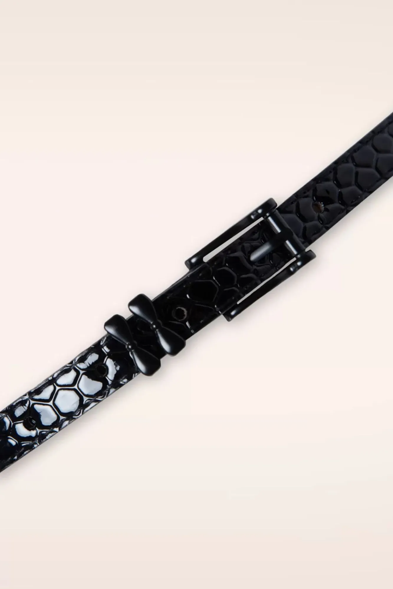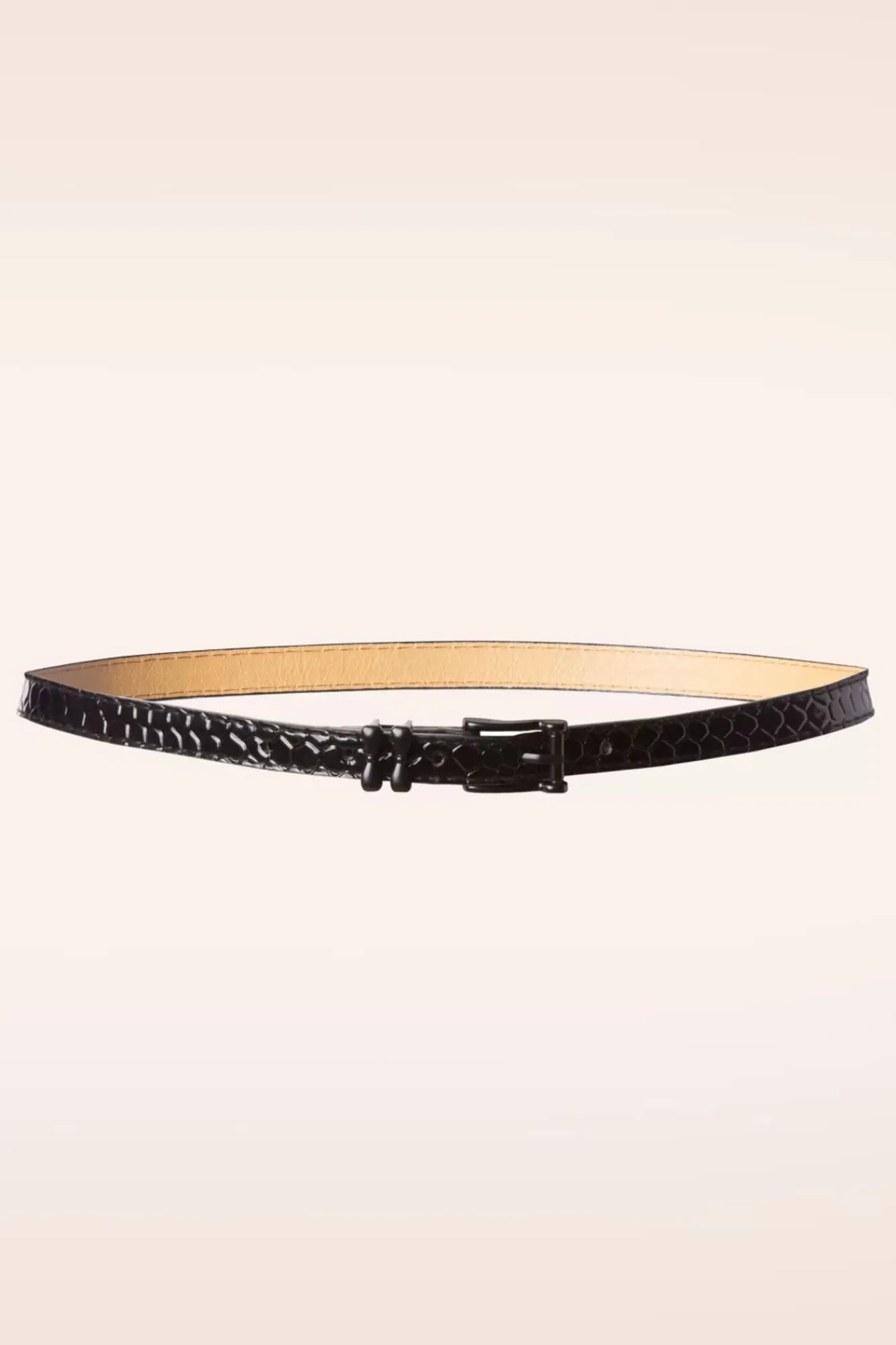 Der 50S Cecile Belt In Crocodile Black Ist Ein Klassischer Gürtel Der Einen Dezenten Vintage Touch An Deinem Outfit Hinzufügen Wird! Dieser Schmale, Verstellbare Gürtel Ist Hergestellt Aus Lackleder-Imitat In Einem Reptilien-Muster Und Ergänzt Mit Einer Schwarzen Schnalle In Form Von Zwei Kleinen Schleifen… Très Chic! Eine Vielseitige Schönheit Die Zu Jedem Kleidungsstück Passen Wird Und Deshalb Einfach In Deiner Gürtel-Kollektion Gehört. Für Eine „Glanzreiche“ Taille 😉