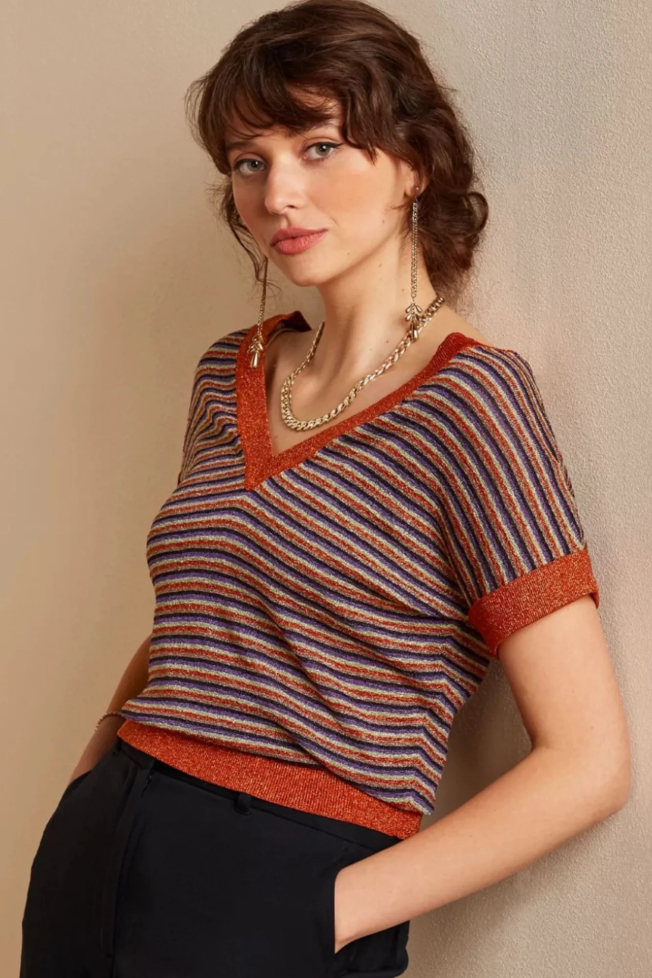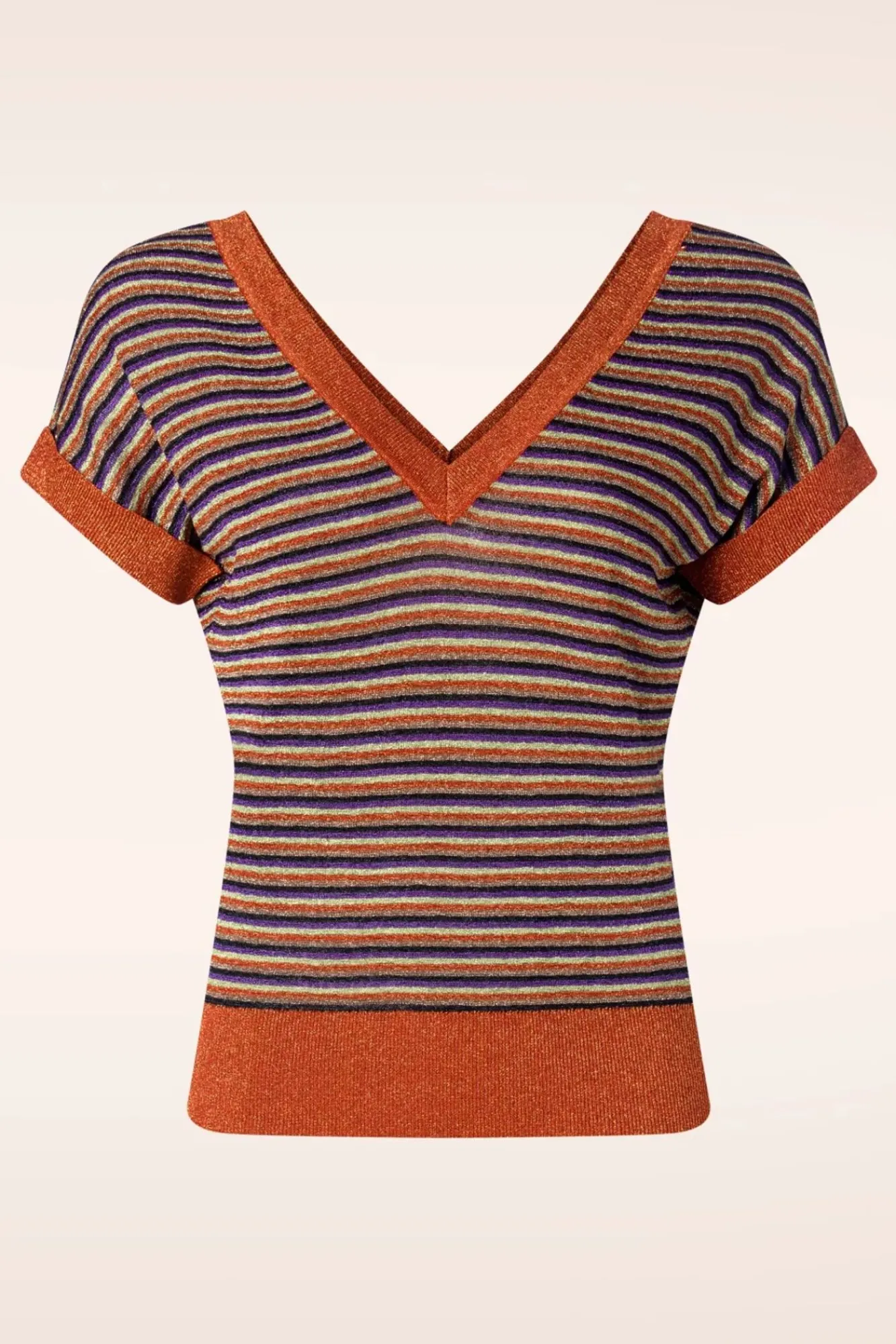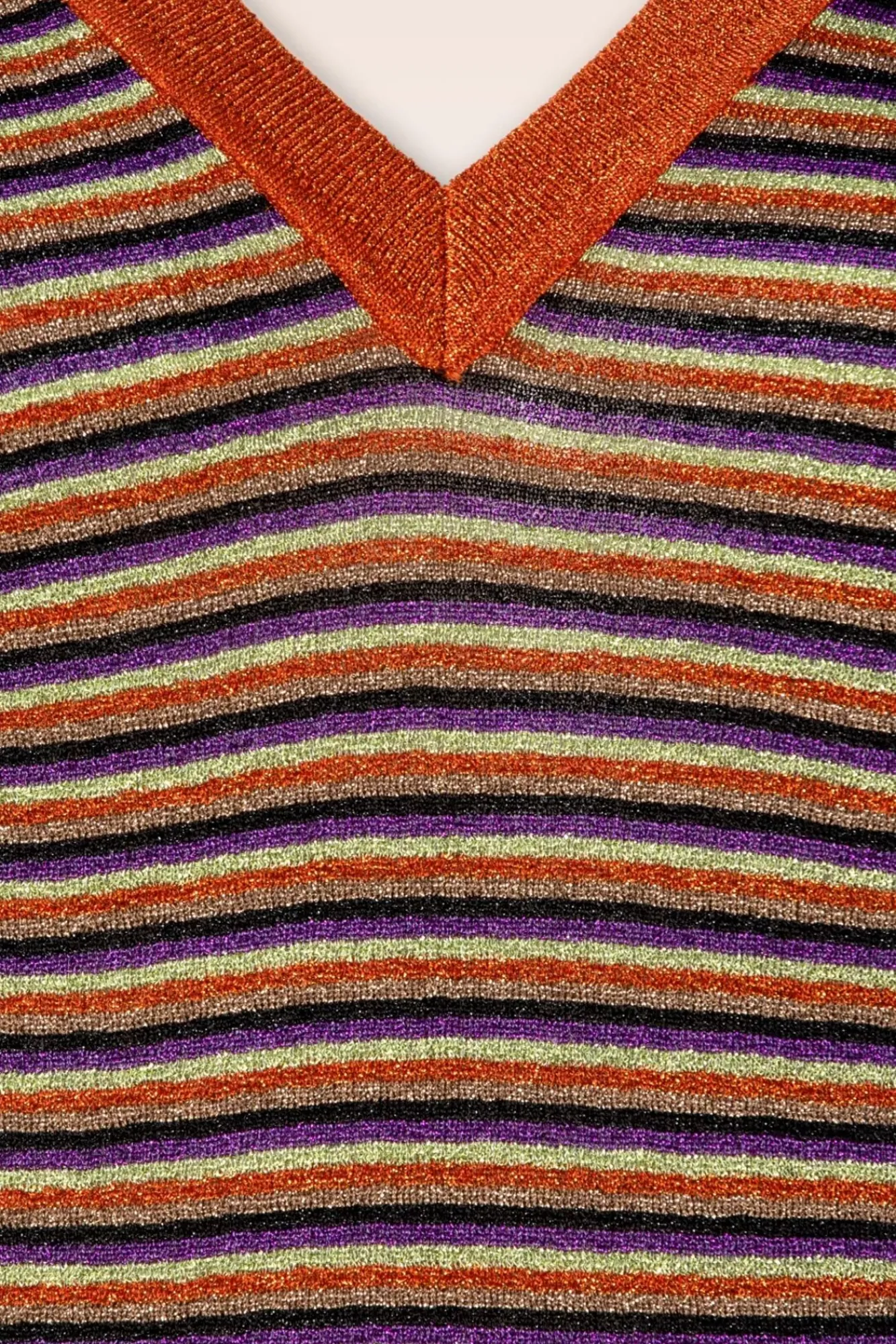 Streifen Und Glitzer… Die Ultimative Kombination! – Dieses Top Wurde Aus Einem Angenehmen Und Feingestrickten, Karamellfarbenen Stoff Gefertigt Und Mit Funky Farbigen Streifen Und Einem Eingearbeiteten Glitzerfaden Versehen.