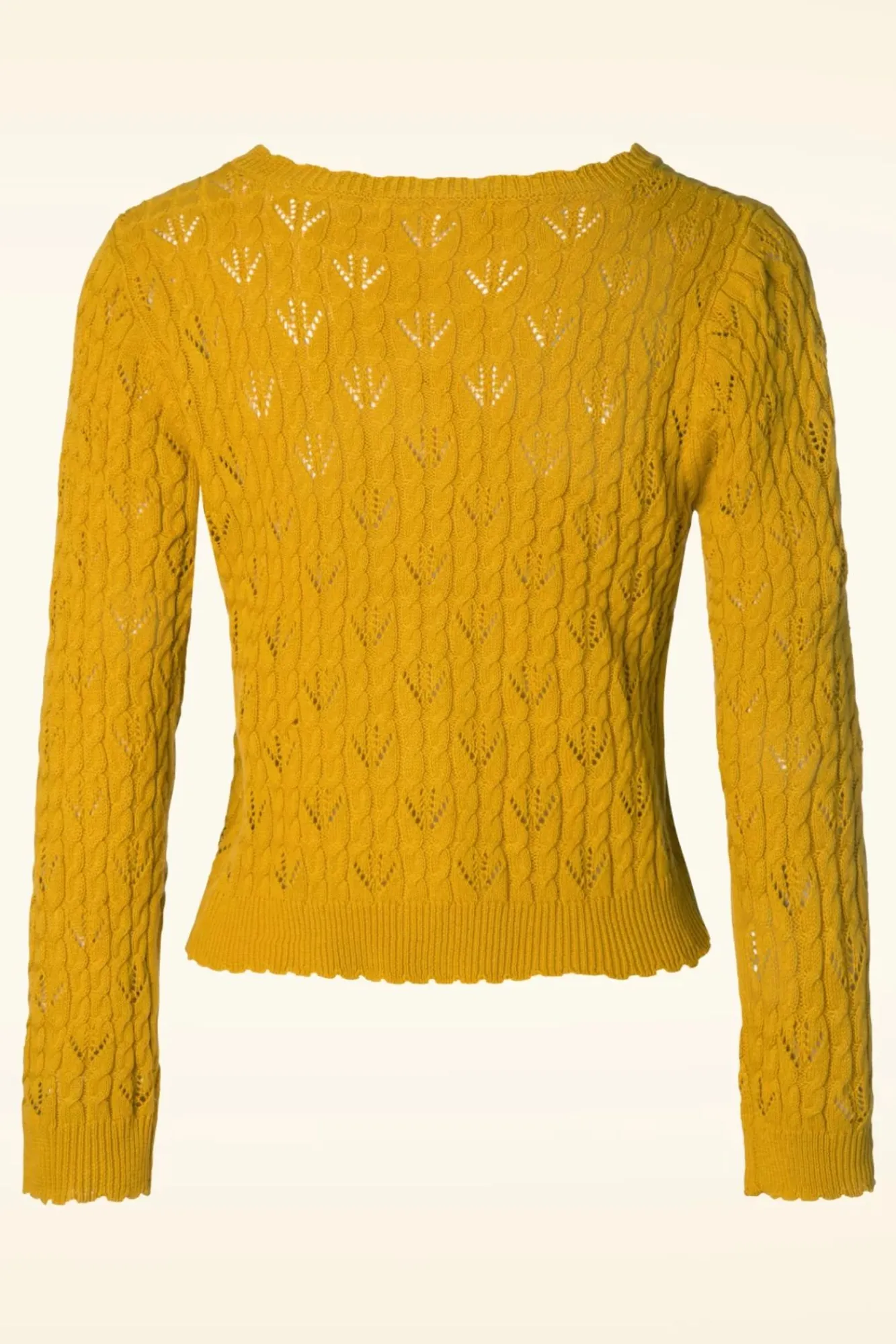 Der 60S Claudia Cardigan In Honey Ist Ein Echter Klassiker… Online In Deutschland, Frankreich Und In Den Niederlanden Exklusiv Bei Topvintage Erhältlich! Klassisch, Schlicht Aber Mit Einem Wundervollen Lochmuster, Der Perfekte Cardigan Der Zu All Deinen Vintage Kleidungsstücken Passt! Mit Einer Eleganten V-Halslinie, Langen Ärmeln, Einer Muschelkante An Der Halslinie, Der Knopfleiste, Den Ärmeln Und Am Saum. Hergestellt Aus Einer Weichen Und Herrlich Dehnbaren, Honiggelben Baumwollmischung In Feinstrick. Mit Diesem Schmuckstück Kannst Du Unendlich Viele Kombinationen Kreieren!