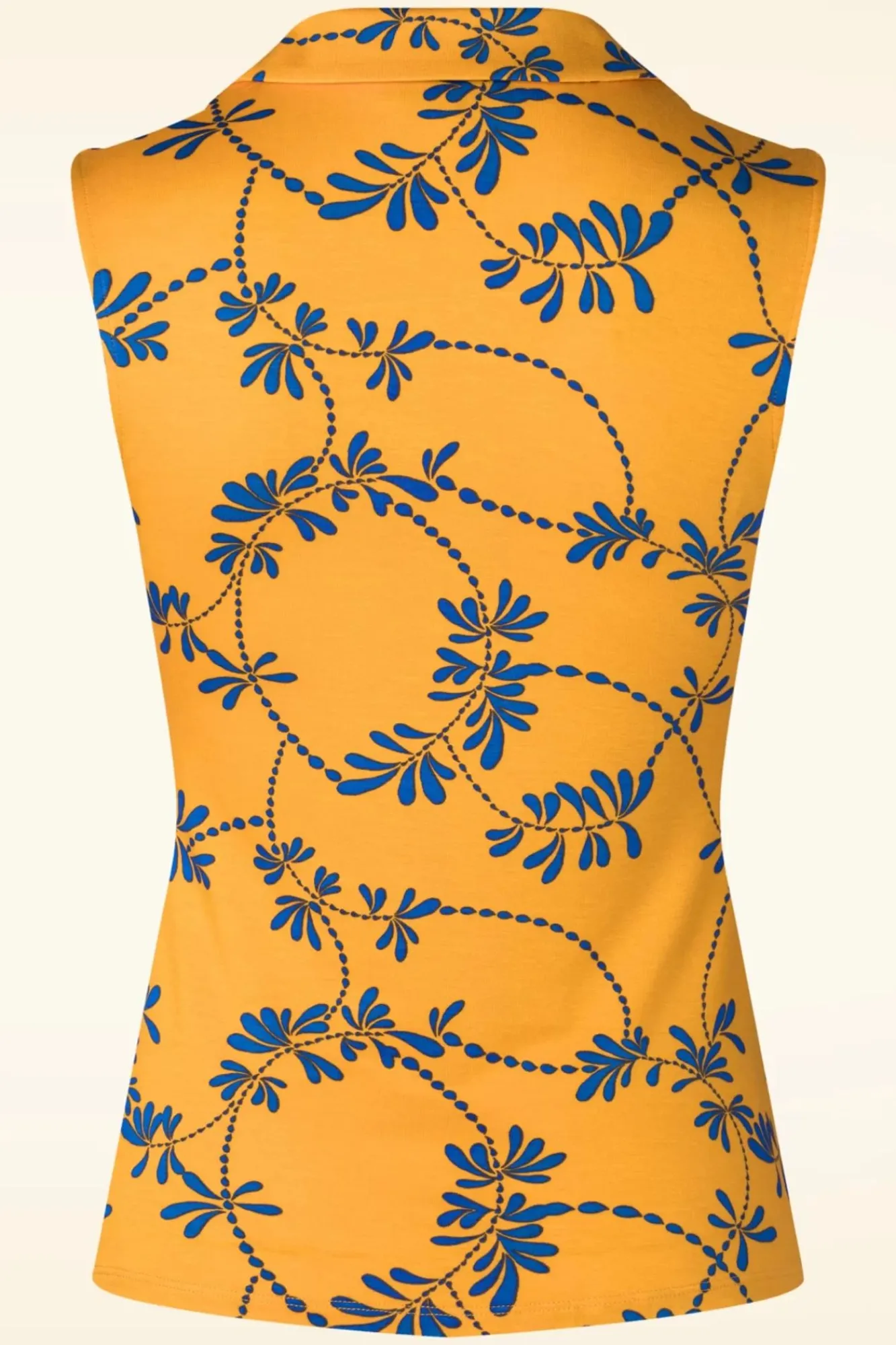Neue Frühjahr/Sommer Kollektion ~ „Life Is Short… Buy The Top!“ Dieses Eden Top Wurde Aus Einem Luftigen Und Dehnbaren Bambus Viskosemix In Gelb Gefertigt Und Grafisch Blau Gemustert.