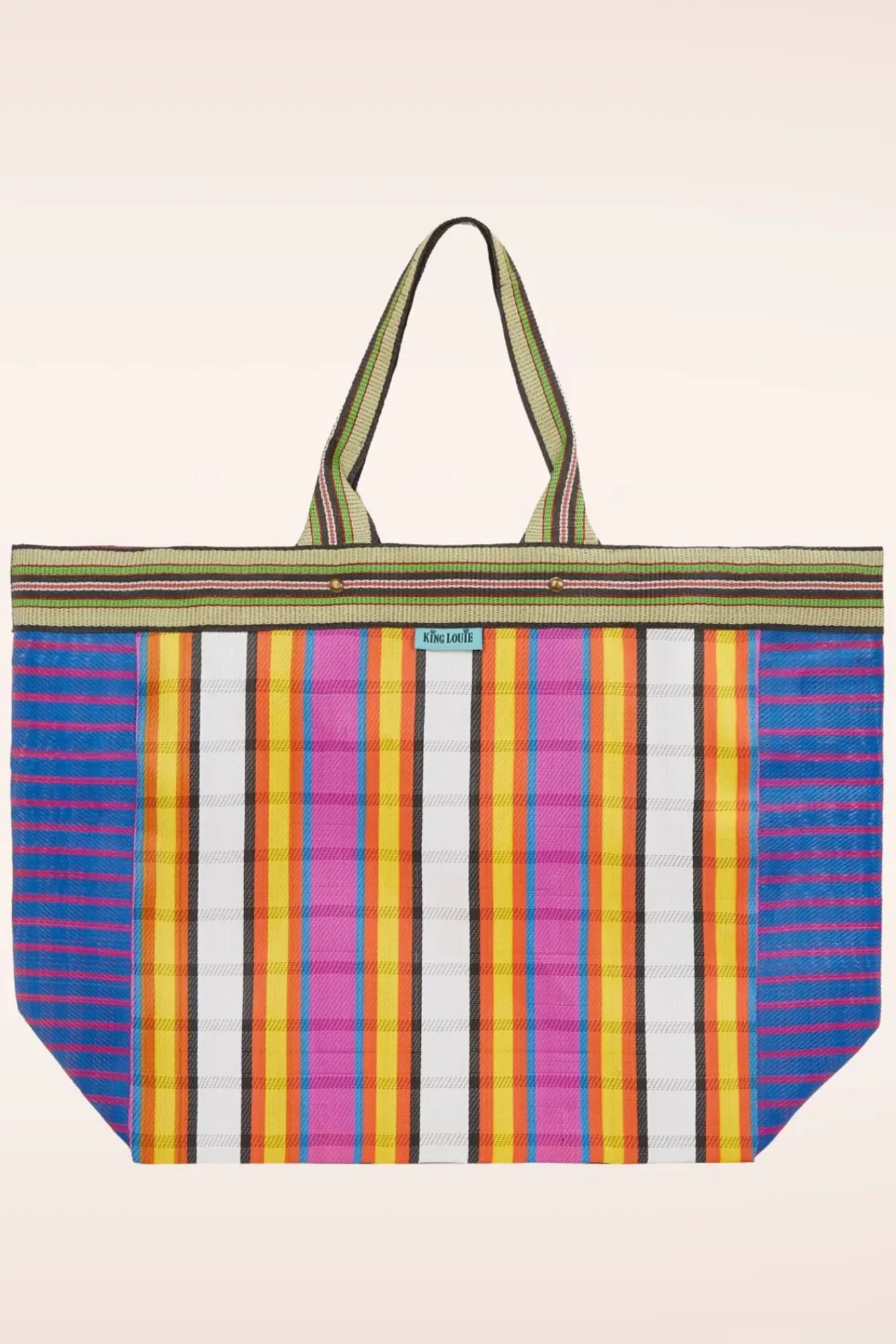 Neue Frühjahr/Sommer Kollektion ~ “I Could Give Up Shopping, But I Am Not A Quitter!“ Dieser Große Shopper Wurde Aus Gewebtem Material Mit Farbenfrohen Streifen Gefertigt Und Ist Nicht Nur Eine Umweltfreundliche Alternative Für Plastiktüten, Sondern Auch Sehr Viel Moderner! Win-Win Situation 😉