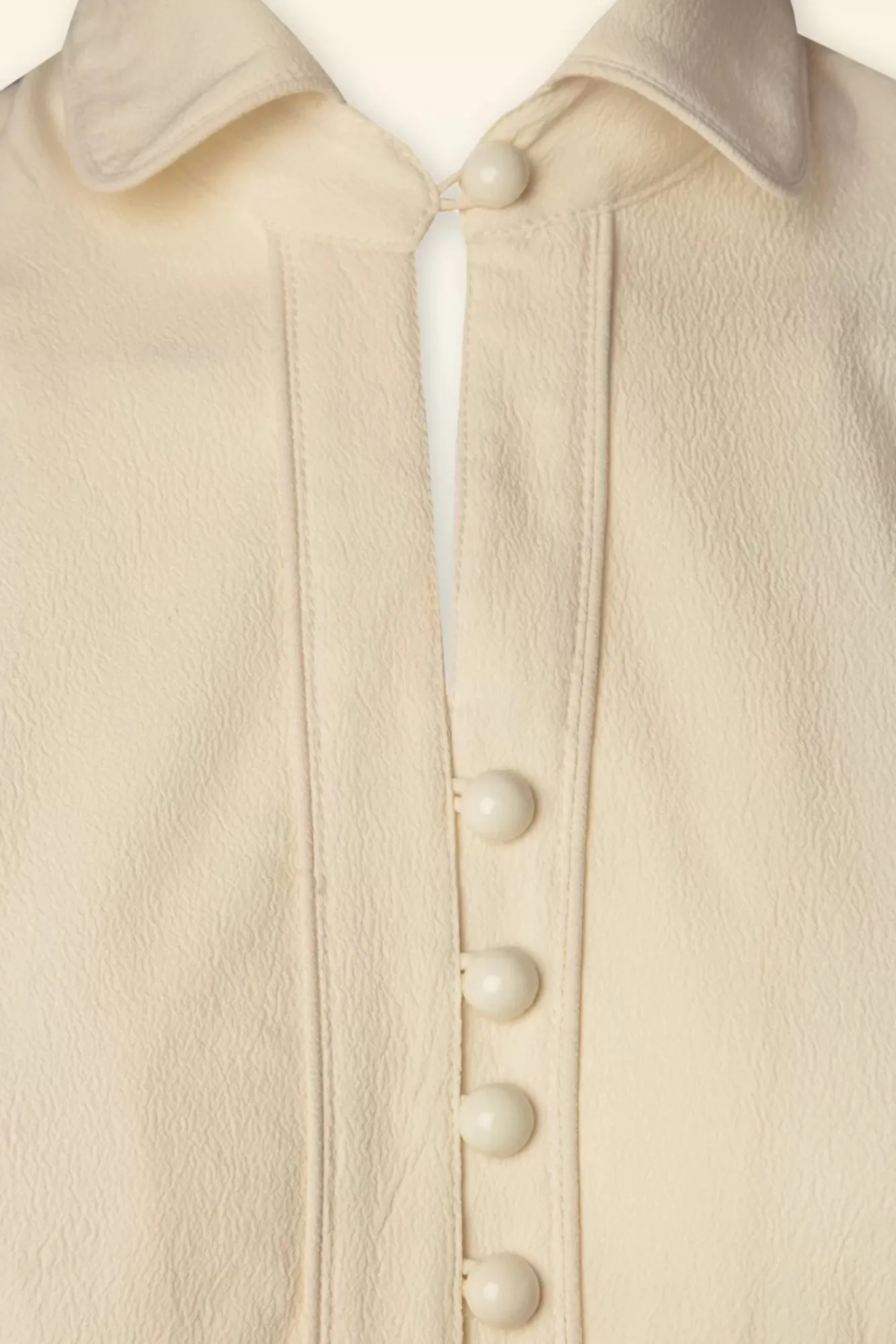 Diese 50S Margot Blouse In Antique White Ist Total Klassisch! Mit Einem Bubikragen, Kurze Puffärmel Und Einer Knopfleiste. Du Kannst Dich Für Eine V-Halslinie Entscheiden Oder Die Bluse Hochgeschlossen Tragen Dank Des Knöpfchens Am Kragen. Hergestellt Aus Einem Geschmeidigen, Crêpe-Ähnlichen Stoff (Nicht Dehnbar) In Elfenbein Der Herrlich Angenehm Im Tragen Ist. Trage Sie Zu Einem Bleistiftrock Oder Einer Hose Mit Einem Taillenhohen Bund Und Weitem Hosenbein Für Einen Ultimativen 50S Look!