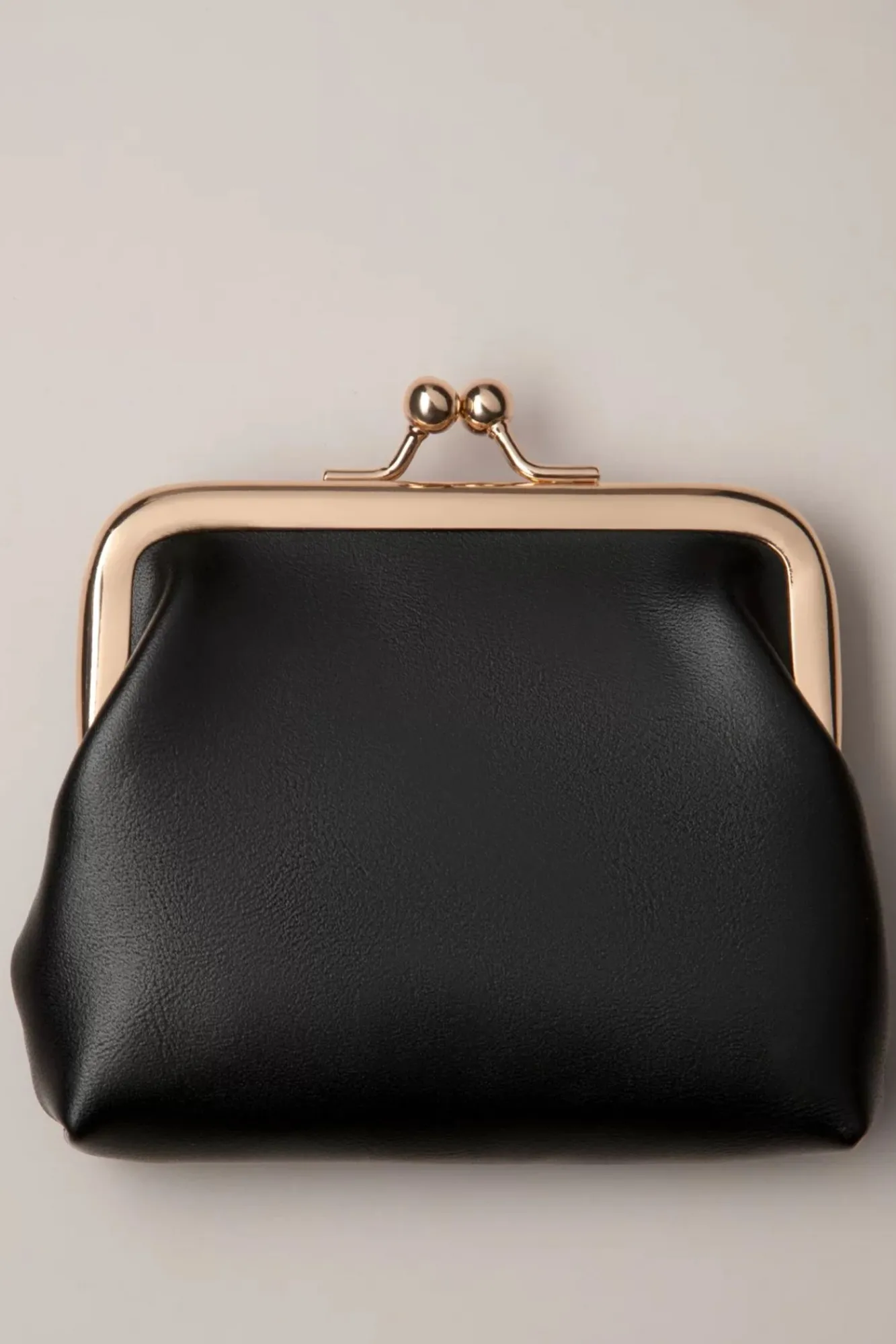 “Only Buy What You Neeed!“ Dieses ‚Traum‘-Portemonnaie Zum Beispiel 😉 Gefertigt Aus Schwarzem Kunstleder, Vollendet Mit Einer Schleife Und Einem Goldfarbenen Clipverschluss Für Den Wahren Vintage Look.